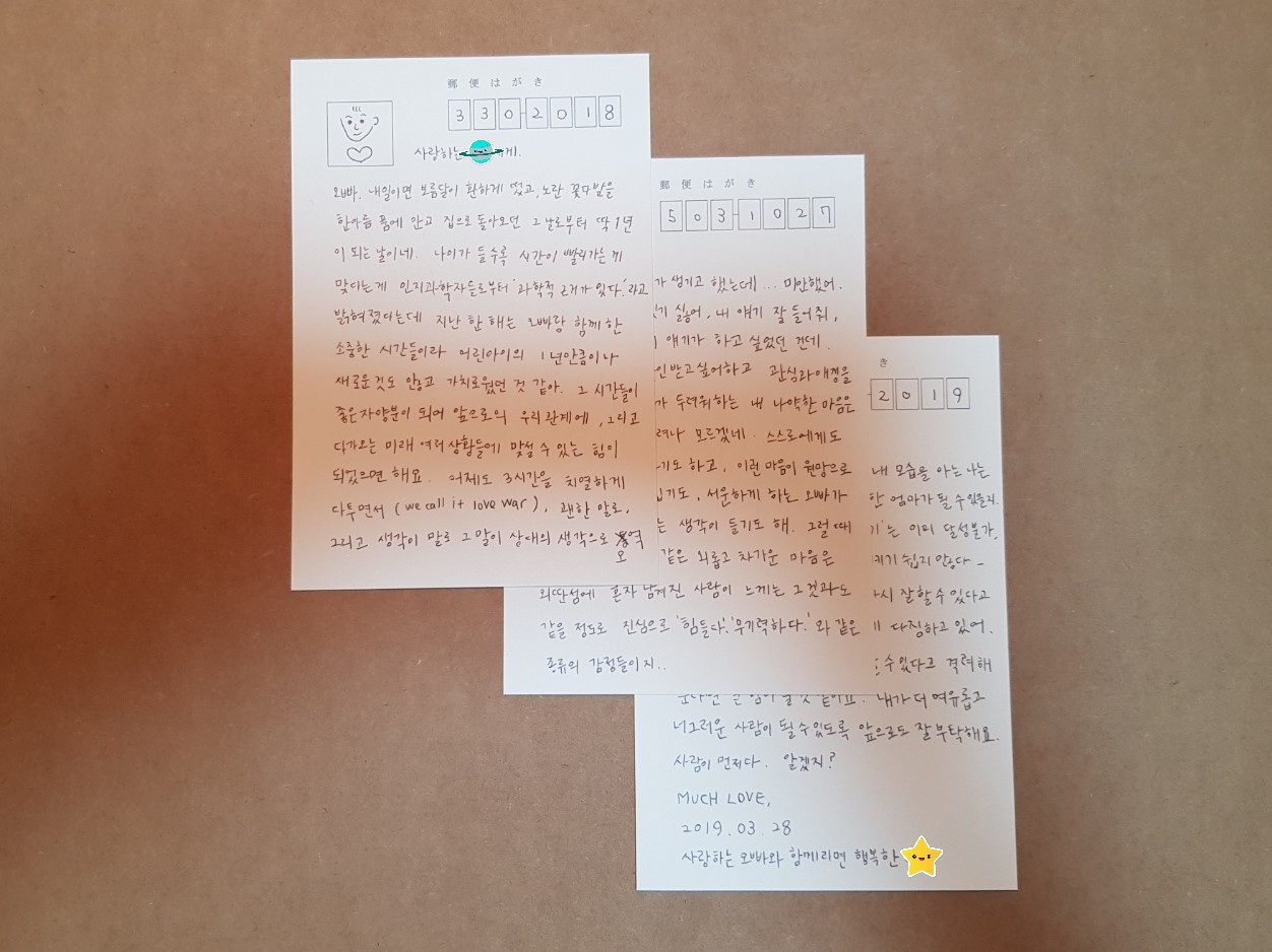 3장 짜리 장문 편지와 좋은 글귀 편지