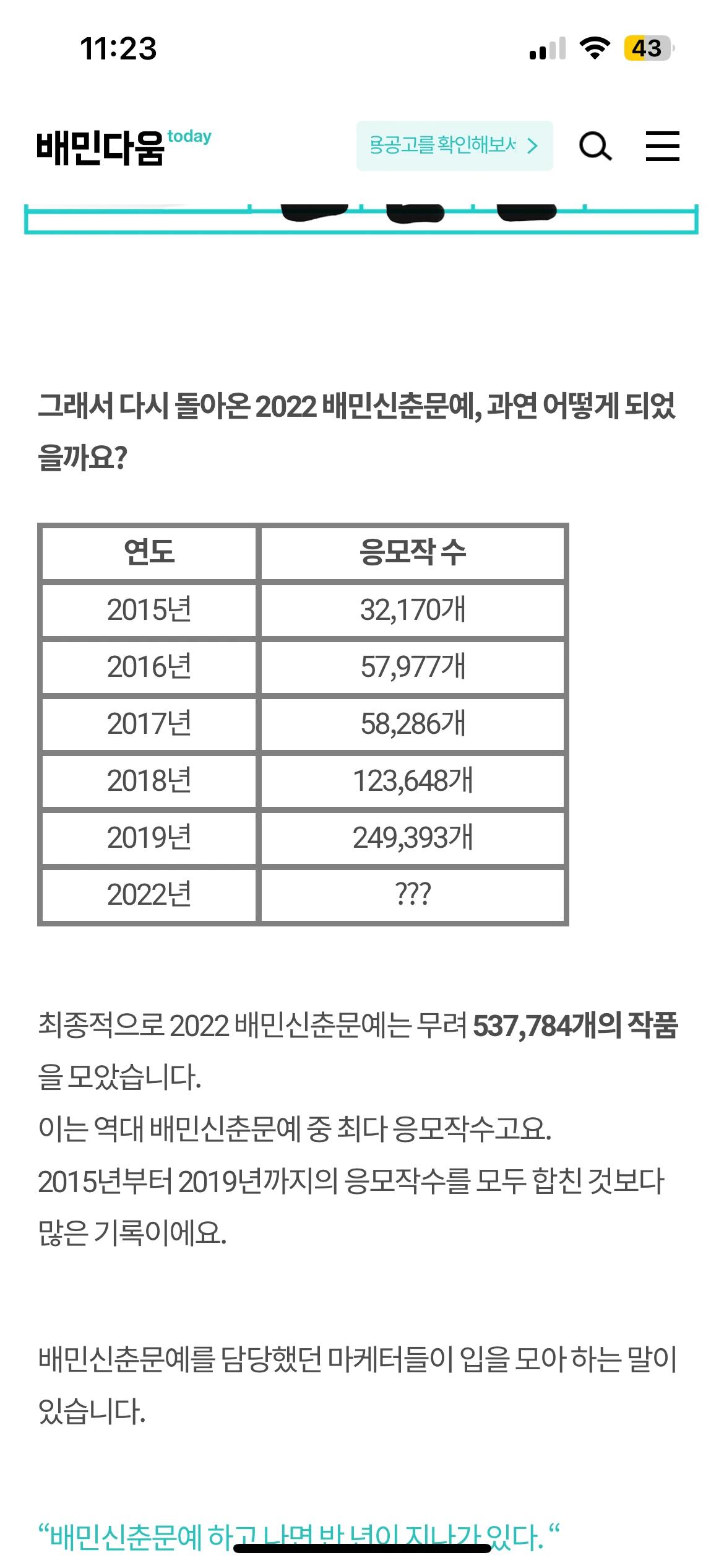 사실 이와 비슷한 포맷 광고의 원조로 배민 신춘 문예가 있죠~