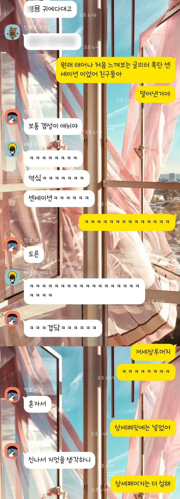 아직 남아있는 단톡방 대화 ㅋㅋㅋㅋ '오색찬란'으로 검색함