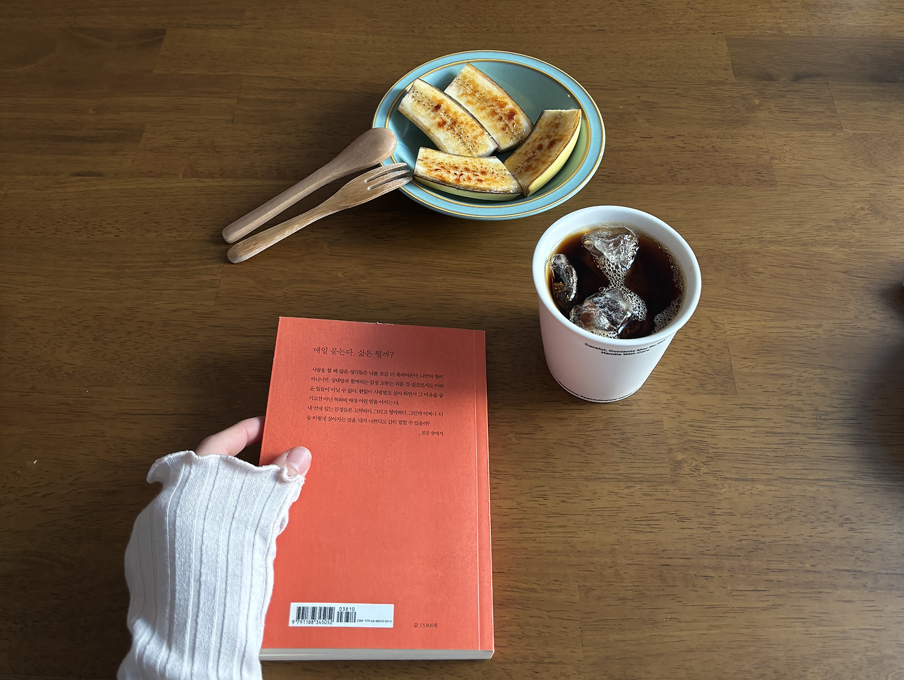 집에서 마음에 드는 책을 읽다 몇 장 남지 않아서 찜해놨던 카페로 향했다. 읽으면서 애착이 많이 갔던 책은 무언가의 의식처럼 마지막을 화려하게 장식하고 싶어 진다. 가본 적 없는 동네의 어느 고요한 카페에 도달했다. 문을 열자 커튼 뒤로 감추어놓았던 공간으로 인해 동네 분위기와는 또 다른 이곳만의 분위기, 디저트, 그리고 커피가 있다. 그래서 나는 그냥 이곳을 온전히 즐기자는 자세로 들고 온 책을 가방에서 꺼내지 않았다.