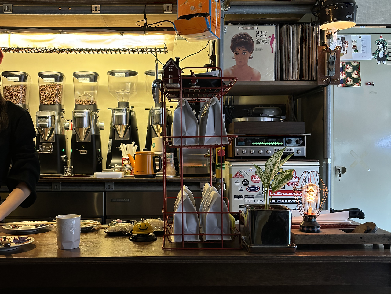 주문하시겠어요, 드시고 가시나요, 오천 원입니다, 자리로 가져다 드릴게요. 카페라면 공통적으로 듣게 되는 단 몇 마디 대사로 나는 이 카페와 카페 주인장님과 나와의 삼각관계를 재확인한다. 주파수가 맞는지, 풍기는 분위기는 어떤지 등등. 결론적으로 ’내 마음이 편한가‘에 초점을 둔다. 정말 친절했고 커피 맛도 뛰어났지만 끌림이 없거나 케미가 일어나지 않았던 곳도 있다. 그러나 커피맛은 보통인데 전체적인 조합이 나와 톱니바퀴 굴러가듯 맞아떨어지면 나는 그곳을 줄곧 찾아간다. 그러다 보면 커피도 점점 맛있게 느껴지기도 한다.