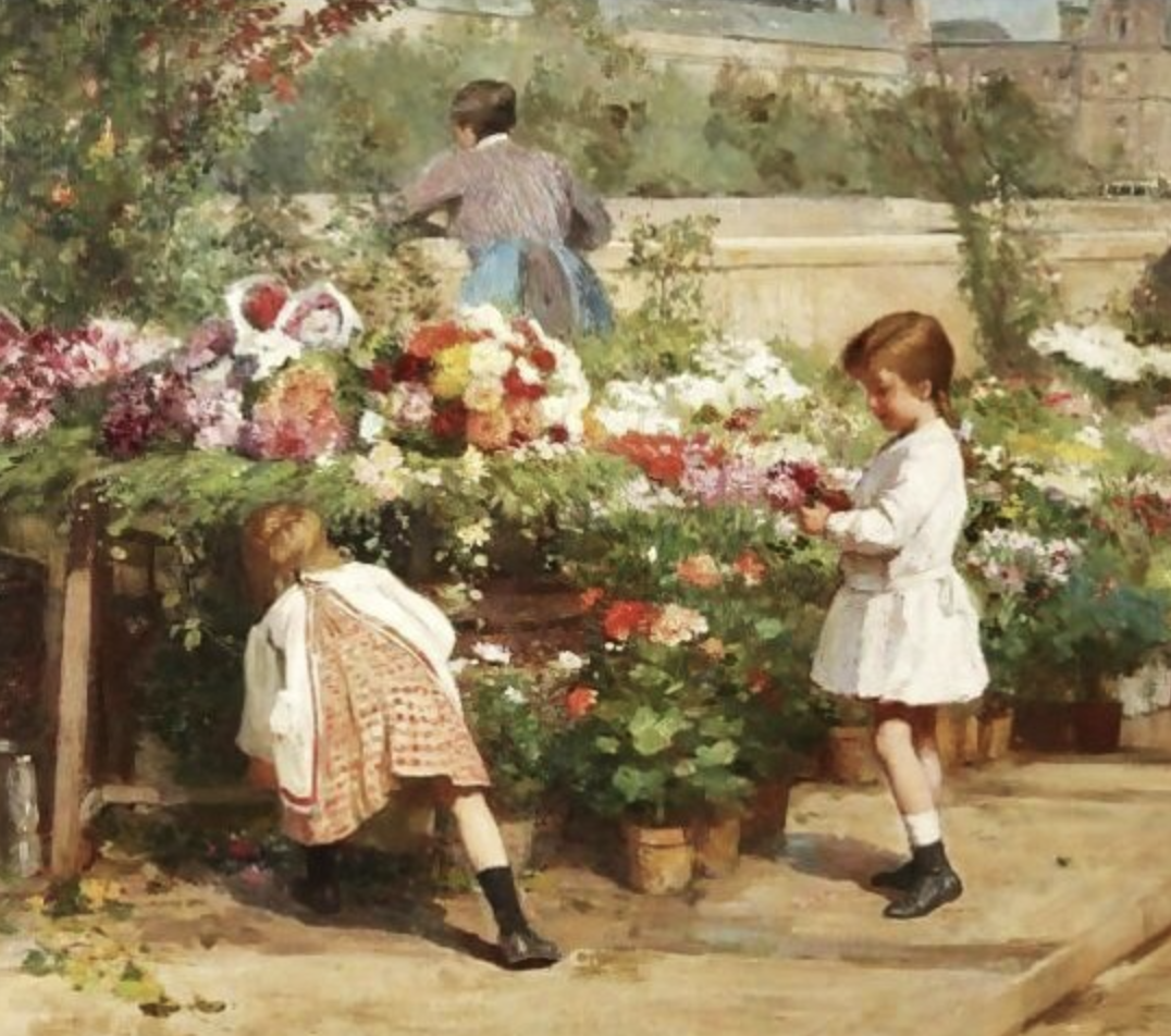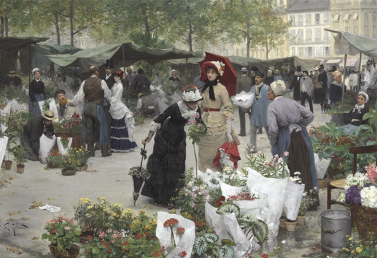 질베르의 그림을 보며 무려 150여년이 넘는 시간 동안 꽃을 사고 파는 모습은 하나도 변한게 없구나 라는 생각을 했어요. 시장의 모습도 점포의 모습도, 사람들의 옷차림만 아니면 지금과 하나 다를 것이 없어 보입니다.