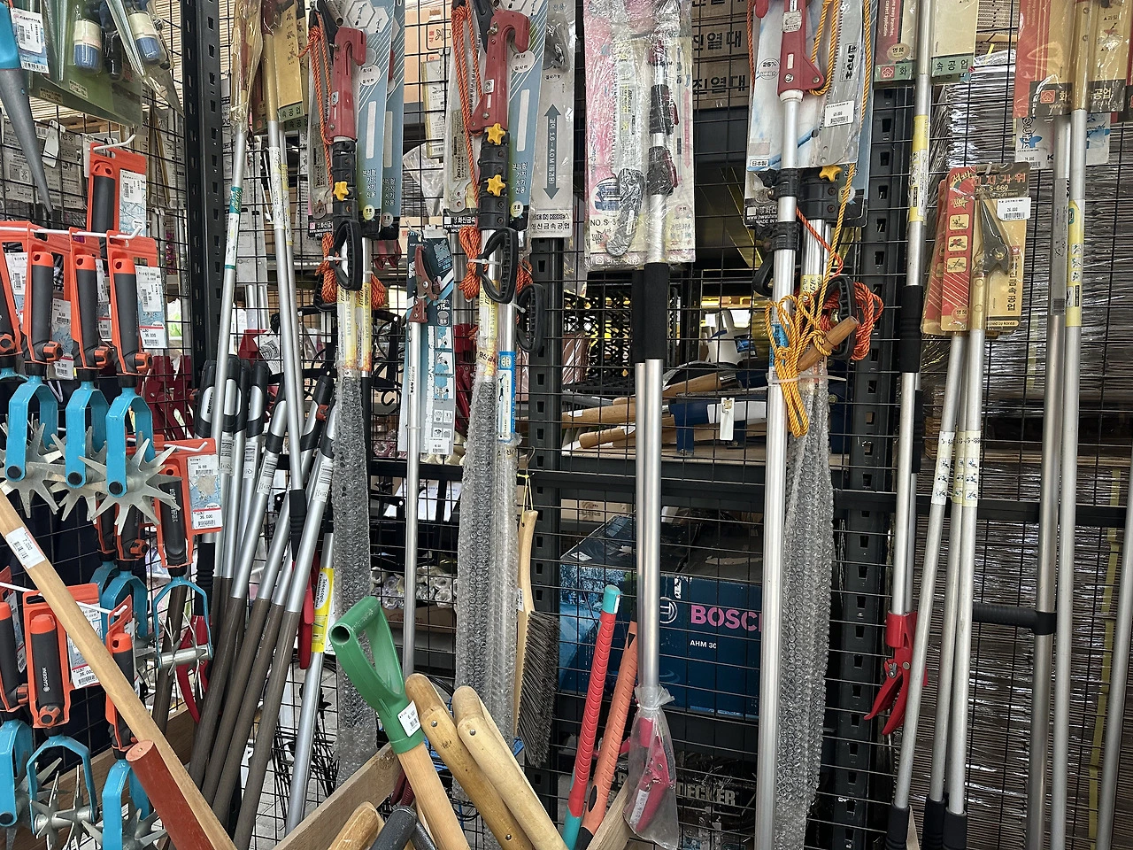 조경에 쓰이는 장비는 어마무시하다. 생화를 다루는데는 꽃가위 하나면 되는데.