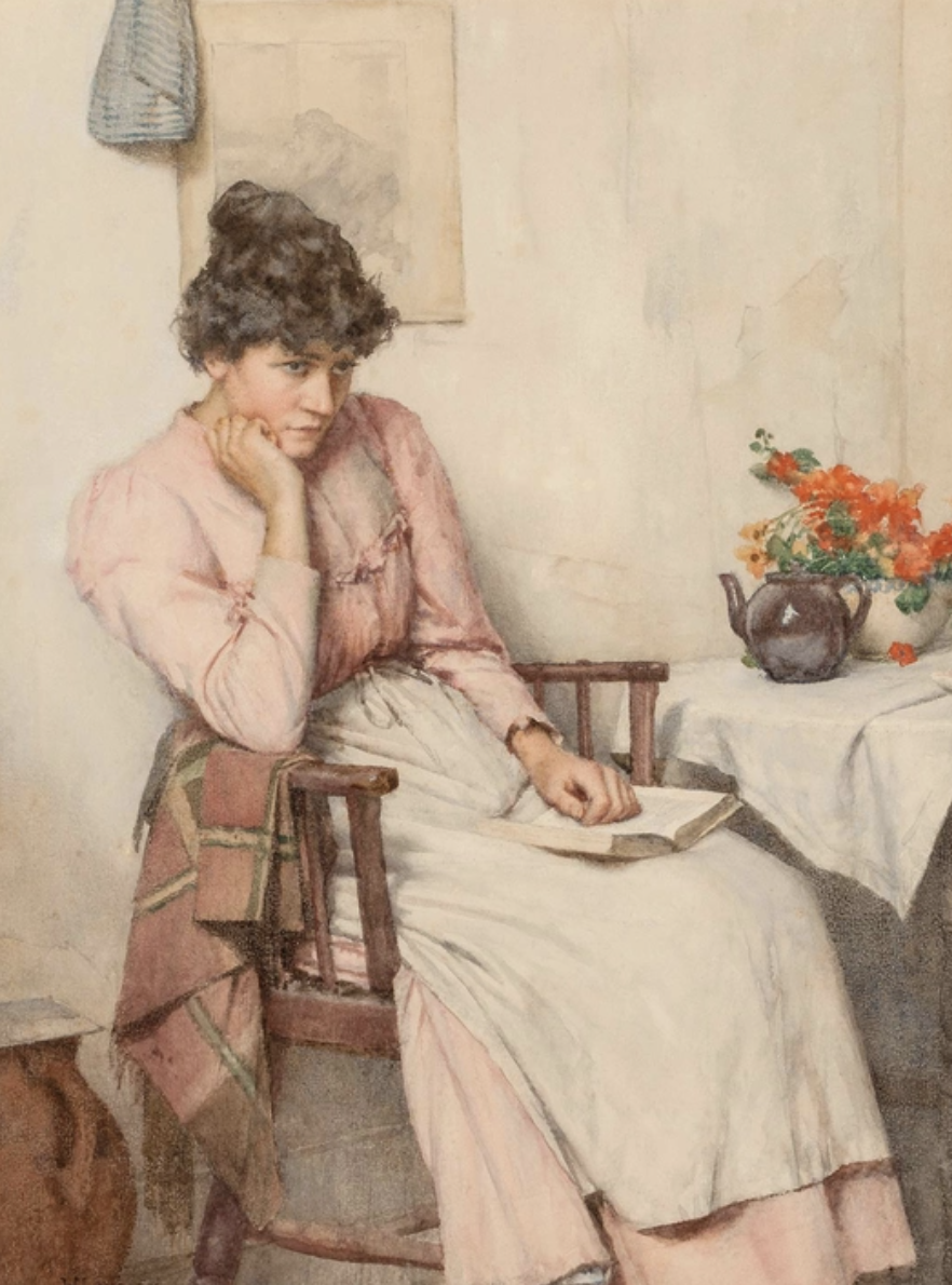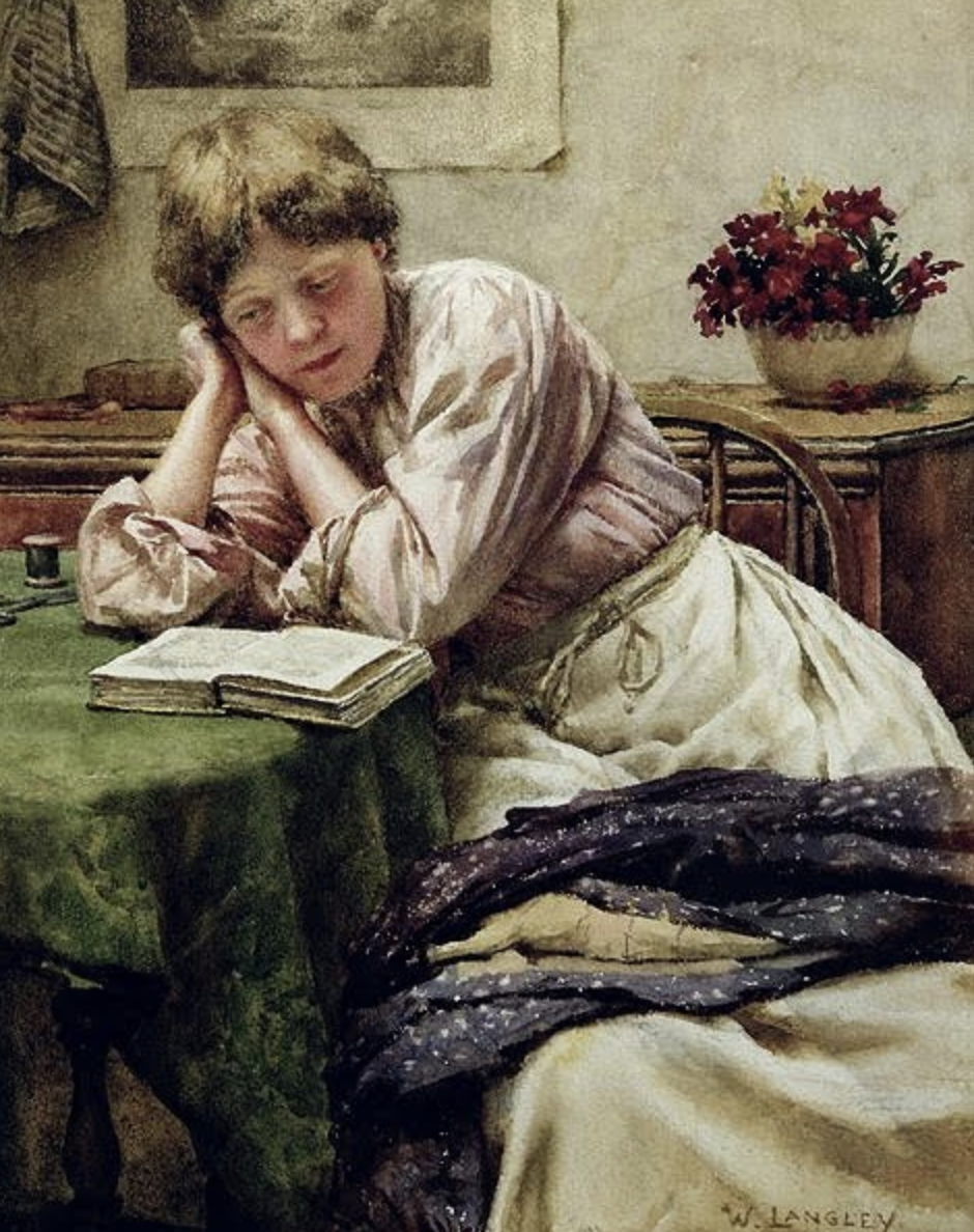 그림 속 여인들은 책 속의 내용들을 음미하듯 잠시 고개를 들어 상상을 하기도 하고, 문장들에서 시선을 떼지 못한 채 한껏 빠져 있기도 합니다. 입가에는 옅은 미소도 보이는 것 같아요. 그녀들에겐 하루의 노동을 잊을 수 있는 정말 소중한 시간이겠지요?