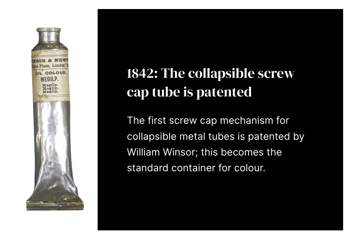 (최초 발명은 1841년 '존 고프랜드'에 의해서, 이후 스크류 형 뚜껑 등이 개선 된 후 물감 회사였던 '윈저 앤 뉴튼'에서 대량생산)