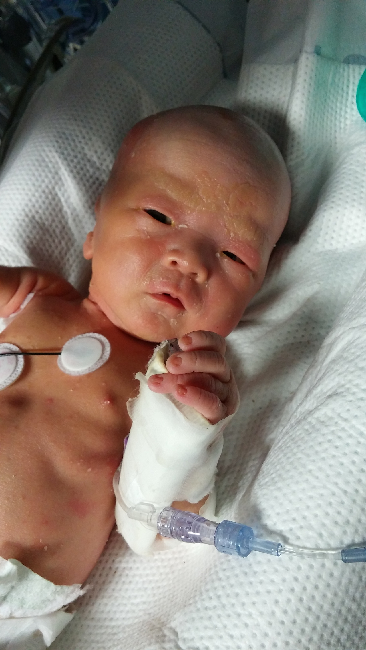 KID Syndrome이 보일 수 있는 증상들 중에 우리가 가장 빨리 눈치챌 수 있던 건 단연 하준이의 피부였다. 내 품에 안긴 하준이의 피부는 매우 거칠었고 건조했으며 머리카락 한 올이 없었다. (당시에는 안일하게도) 머리카락이야 성장하면서 날 수 있겠거니 생각했지만 두꺼운 각질로 뒤덮인 머리와 등 그리고 팔과 다리 등은 우리의 걱정거리였다. 각질들의 형상들 또한 몸의 부위마다 판이했다. 어떤 부분은 노랗게 두꺼운 각질층으로 덮여 있었고, 어떤 부분은 매끈하긴 해도 자세히 보면 비늘 같은 형상이 보였다. 생후 3주의 어린 하준이는 그 부분들이 가렵거나 간지러운지 종종 몸을 비틀고 이불을 휘감았다. 간호사들은 규칙적으로 Dr. Cox가 처방해 준 로션과 연고 등을 하준이 몸에 도포했다. 그중 한 종류는 딱지가 몸에서 분리될 수 있게 도와주는 연고였고, 다른 한 종류는 피부재생에 도움이 되는 약이었다. 둘 다 어느 정도 스테로이드가 함유되었던 약제들이었다. 처방 없이는 살 수 없을 정도로 강한 스테로이드를 함유한 연고들이었지만, 효과는 제법 즉각적이었다. 병원에 있는 동안에도 하준이의 딱지 중 일부는 떨어져 나갈 기미를 보였다.