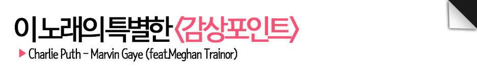 2015년 한 해 동안 차세대 팝을 이끌어갈 주목할만한 신인이었던 '찰리 푸스(Charlie Puth)' 노래를 들고 왔다. 사실 '찰리 푸스'는 영화 [분노의 질주: 더 세븐]의 주연배우였던 폴 워커를 위한 추모곡 'See You Again'을 통해 많은 사랑을 받았던 가수이다. 빌보드 차트에도 오를 만큼 전 세계인이 주목한 싱어송라이터이기도 하다. 오늘 노래는 '찰리 푸스'가 사랑하는 '마빈 게이'를 향한 구애 담은 노래이다. 쉽게 말해 사랑을 가득 담은 헌정 곡이라고 해두자.