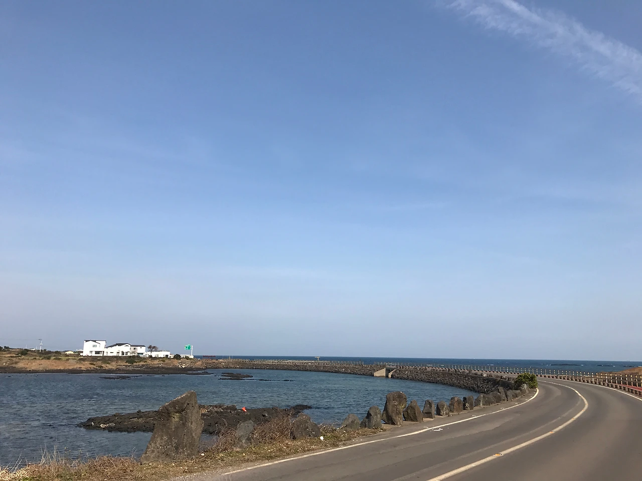 너무 천천히 달린 것인가? 아직 하도리 밖에 못 왔다. 사실 가다 서다 하며 자연을 담기 정신없었다. 가는 곳마다 절경이다. 바다는 에메랄드빛이고 하늘은 청량하다. 회색빛의 돌담을 따라 만들어진 밭은 봄기운이 만연하다. 어딜 둘러보나 눈이 호강이다. 서둘러 점심을 해결할 곳을 찾았다. 하도리 항구 앞에 있는 해녀 할머니들이 운영하는 식당이 눈에 들어왔다. 이곳은 제주 가정식이 메인 메뉴다. 하지만 사람들은 파전이 유명하단다. 나의 선택은 가정식이었다. 평일이라 내가 첫 손님이었고, 할머니들은 내가 반가운 모양이었다. 라면이나 칼국수 먹지 말고 가정식 먹으란다. 방금 잡채와 고사리로 반찬을 만들었는데 맛나게 무쳤단다. 가격 대비 만족스러운 상차림이다. 어느 하나 사 온 건 없고 직접 만든 것이다. 특히 미역무침은 환상적이다. 바다 내음도 그렇지만, 싱싱함이 느껴진다. 마늘이나 무로 만든 동치미, 시래기 된장국은 근처 밭에서 가져온 거란다. 소박하지만 정성이 가득한 만찬이었다. 성게 라면, 칼국수도 맛보고 싶었지만, 다음에 먹어도 될 것 같았다.