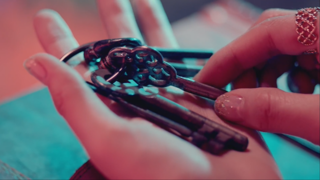 열쇠는 첫 장면부터 등장한다. 마치 엔딩에 자물쇠가 등장할 것 같은 착각과 함께 말이다. 열쇠는 해결과 함께 핵심적인 단서의 의미로 사용된다. 무엇인가 중요한 것을 간직하고 있다는 것을 보여주기 위한 장치다. 하지만, 이렇게 중요한 열쇠를 물 컵에 빠뜨린다. 마치 다시는 사용하지 않을 것처럼 의미심장한 행동이다. 이러한 행동은 소중한 것을 드러내고 싶지 않은 방어적인 표현으로 봐야 할 것 같다. 숨겨진 진심, 가장 여리고 소중한 내 마음이 상처 나지 않았으면 하는 바람에서 튼튼한 보석 상자에 담아 잘 보관해왔다. 바람과는 다르게 소중한 내 마음이 상처가 나 더 이상 사용하고 싶지 않음을 나타냈다. 다시 말해 자존심이 상했다는 것이다.(여자를 울리면 못써)