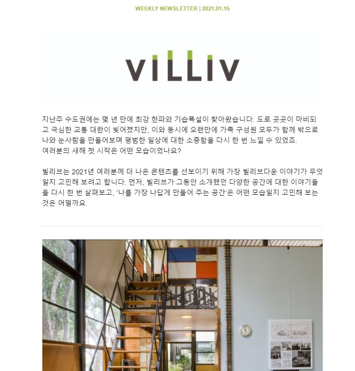 이건 사실 앞서 소개한 뉴스레터보다는 많이 알려지진 않았습니다. 그럴만한 이유가 있죠. 소재는 집, 인테리어 관련이고 발간하는 회사가 건설사라 앞서 소개한 뉴스레터에 비해 대중적이지 않죠.
