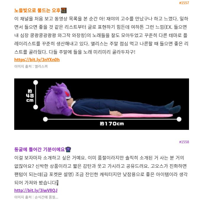 가볍게 보기에는 딱 좋은 소재들입니다. 조금 아쉬운 건 소재 자체가 전체적으로 가볍다 보니 앞서 소개 한 뉴스레터보다 상대적으로 깊이감에서는 다소 떨어지는 부분이 있습니다. 하지만 취향 차이에 따라 다르게 느낄 수 있습니다. 저는 개인적으로 이 정도에도 만족합니다.