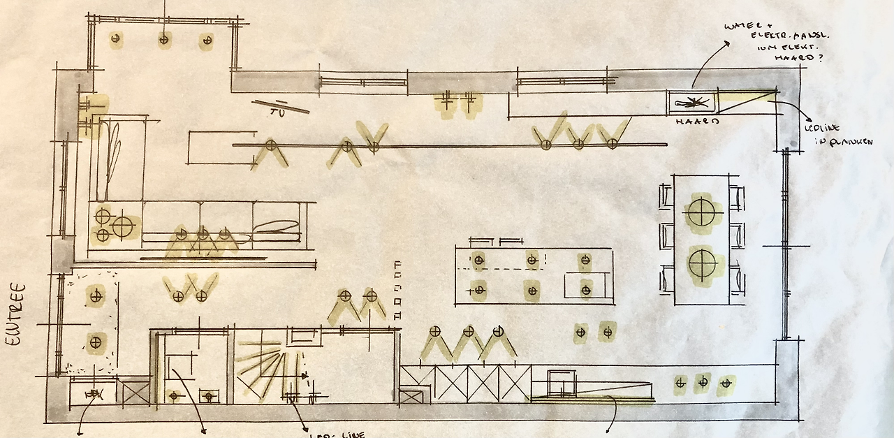 그런 김에 완성된 부분을 돌아보며 소소한 인테리어 팁을 적어볼까 합니다. 평상시에 예쁜 인테리어와 가구에 관심은 많았어도 실제로 조명부터 수도관 위치까지 직접 해본 적은 저희 둘 다 이번이 처음인데요. 전문가의 자문은 주방 및 식탁의 위치와 조명 컨설팅을 받을 때 유용했어요. 그 외에는 유튜브나 기타 웹사이트에서 그때그때 팁을 찾거나 영감을 주는 사진을 검색해 차용했습니다. 이 정도면 거의 DIY입니다.