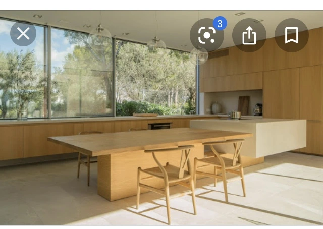 - 내추럴 + 내구성 좋은 재질: 저희는 나무와 돌을 주로 사용하는 인테리어를 비교적 저렴한 예산에 하고 싶었기 때문에, 전체 원목 주방은 안 했고요, MDF 합판에 브니어(Veneer)를 붙인 '겉에만 나무' 주방을 독일에서 주문 제작했습니다. 진짜 돌은 주방이나 아일랜드로 쓰기에 너무 약해, 내구성이 강한 Dekton (덱톤) 타일을 썼어요. 돌의 무늬가 프린트된 '겉에만 돌'입니다. 아일랜드에 들어가는 의자 (Bar stool)들도 같은 재질의 나무로 (natural oak) 통일하니 마치 맞춘 것처럼 잘 어울립니다.