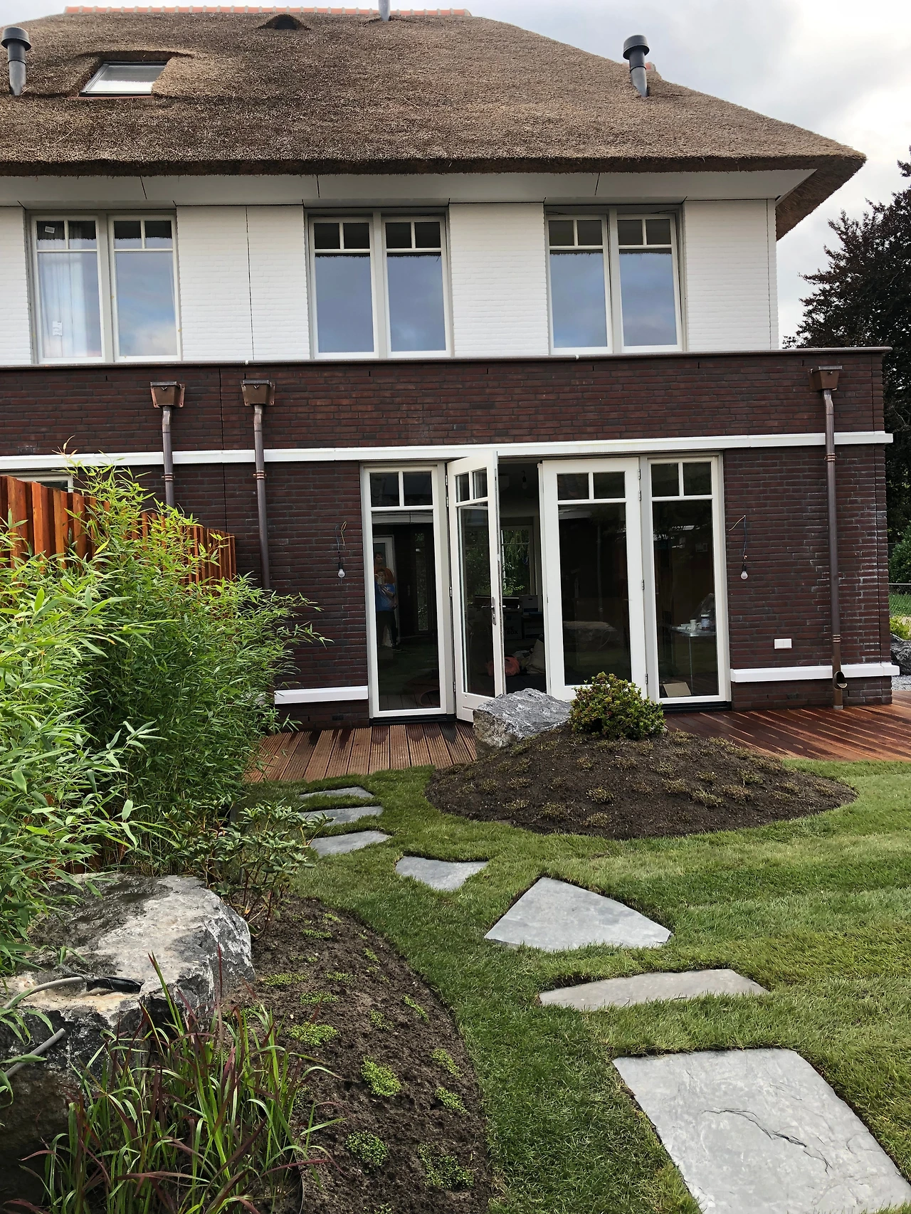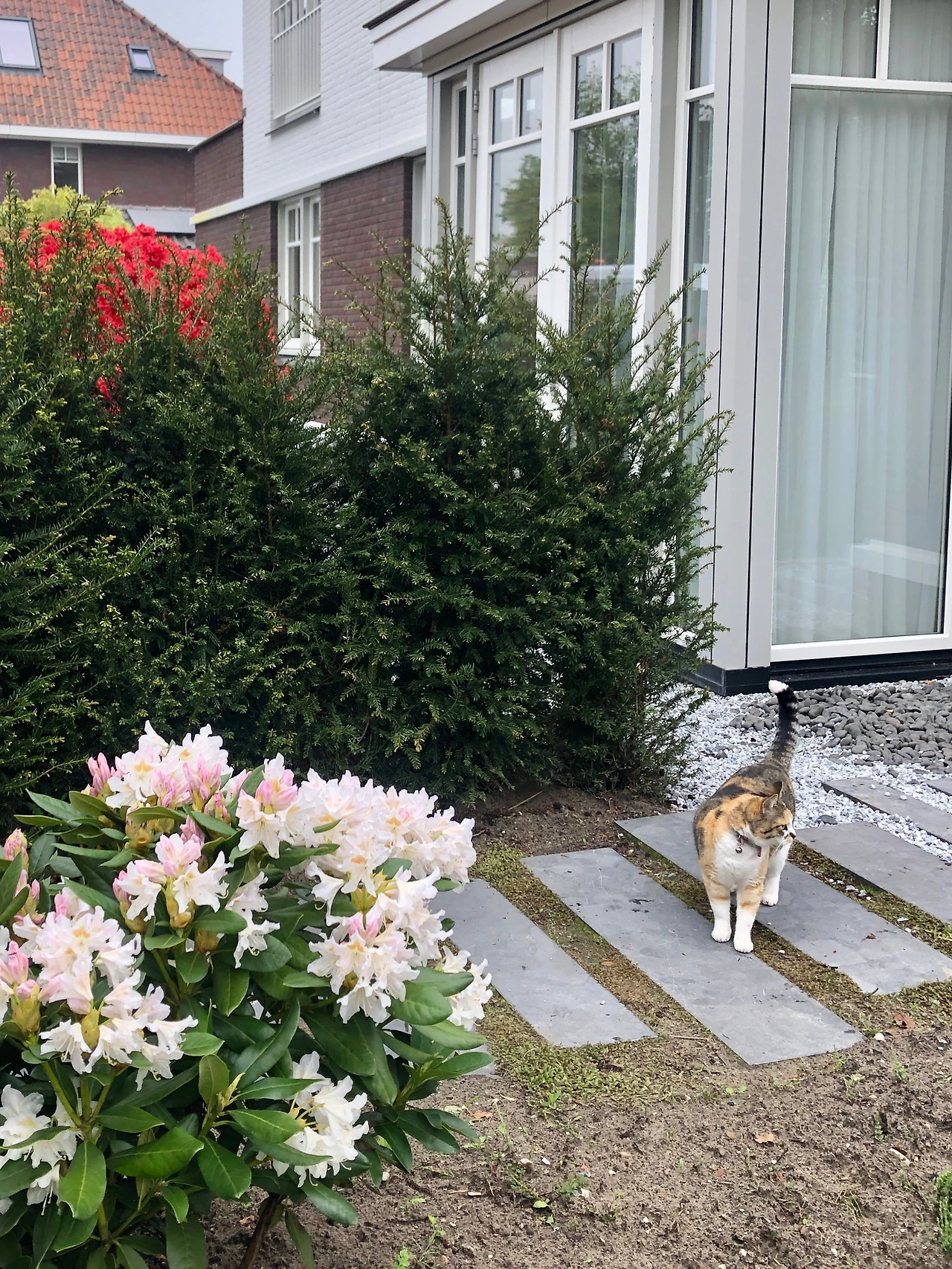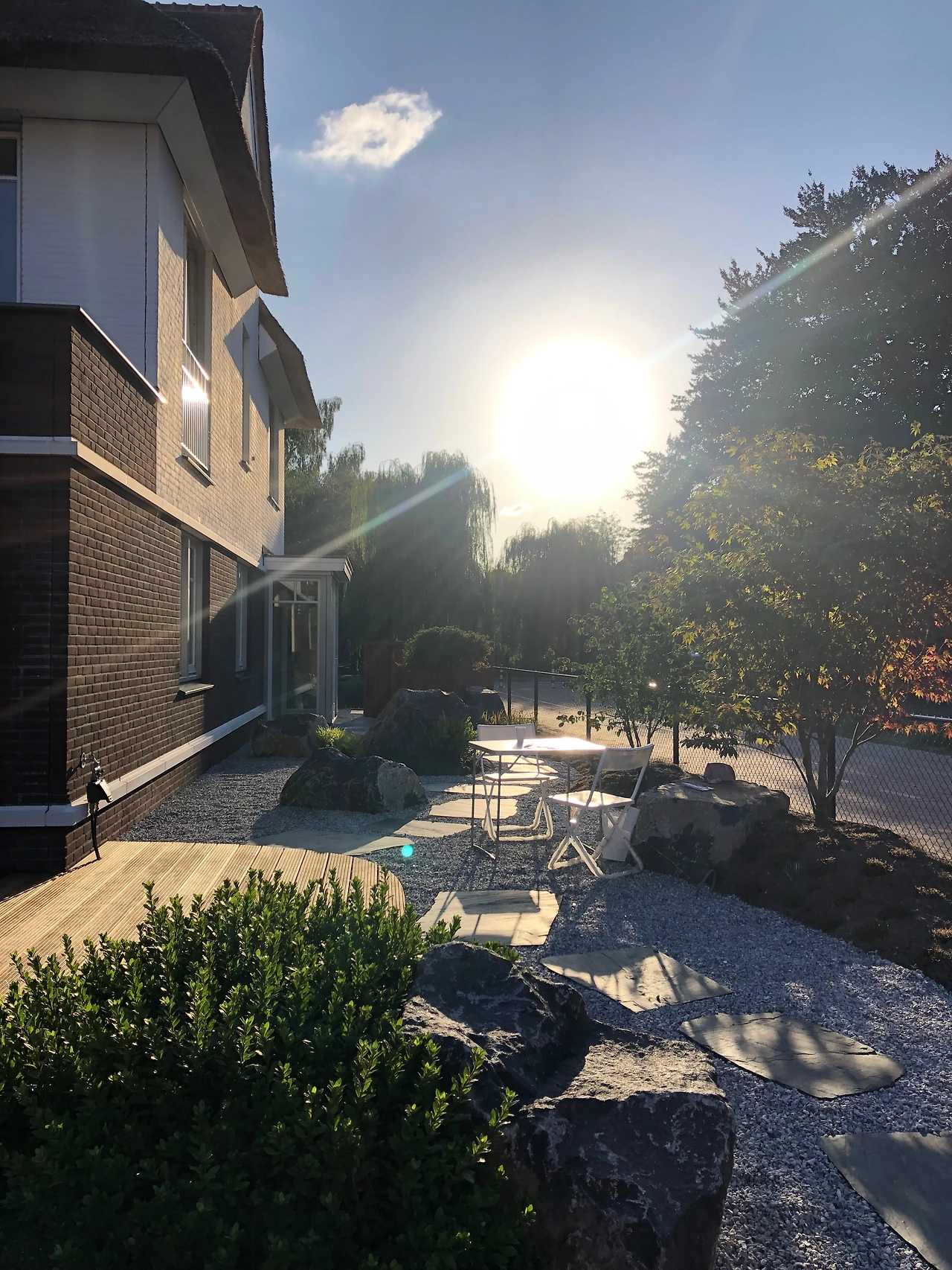 보통 가정의 네덜란드의 정원은 심플한 편입니다. 잔디와 일광욕 할 수 있는 의자는 필수품 같이 느껴지고요. 보통 정원에 테이블을 두어 해가 좋은 날, 앉아서 쉬거나 잡담을 하기도 하고요. 그리고 사는 사람마다 옵션이 다르죠. 꽃이 많은 정원, 나무가 많은 정원, 바비큐가 있는 정원, 아이들이 놀 수 있는 기구가 있는 정원 등이요. 아름다운 게 중요한 저희 부부는 정원을 디자인할 때 일본식 정원, 바깥의 뷰가 안으로 들어오는 조경용 정원을 생각했는데요. 관련한 책도 읽어보고 자료도 찾아보니, 관리도 쉬울 것 같았어요. 돌을 많이 두면 되니까… ㅎㅎㅎ