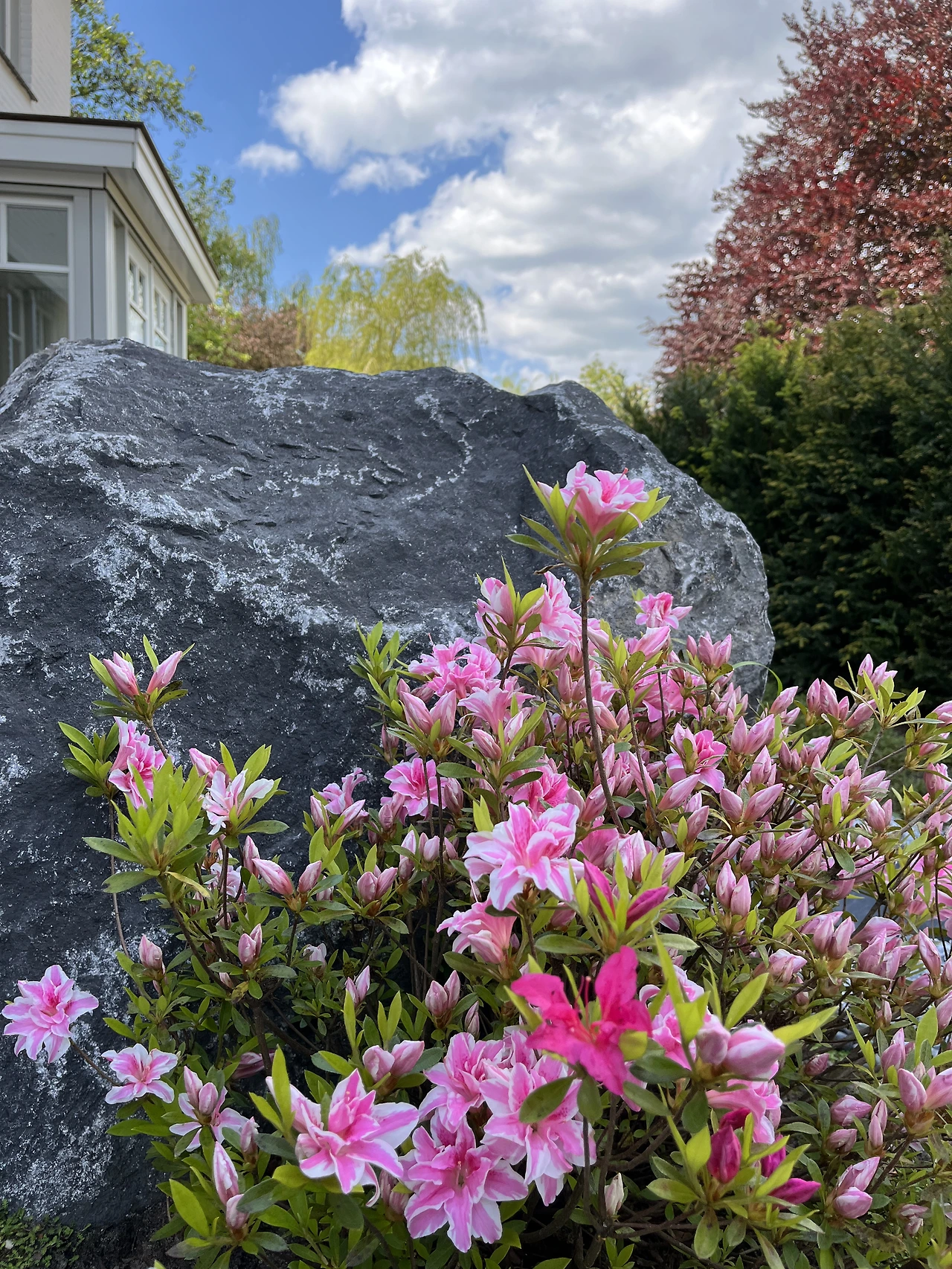 정원 공사가 끝나고 계절이 바뀌어 이제 꽃이 피었습니다. 무슨 색 꽃인지도 알 수 없었는데 말이죠. 꽃이 피고 빈 곳이 숭숭했던 이끼가 채워지는 것을 보니, 정원은 살아있는 인테리어 같아요. 요새는 아침 먹을 때마다 대나무를 보며 남편이 감탄합니다. 새로운 대순이 기존의 대순보다 훨씬 더 높게 빠르게 갑자기 (그야말로 우후죽순) 자라고 있거든요. 아름다운 꽃을 보고 아기가 잘 때 한가로이 정원에서 커피를 마시면 참 좋더랍니다 ㅎㅎ 하지만 그런 때는 드물더라고요… 이 정원은 초여름인 지금이 가장 예쁘구나 싶습니다. 가을로 지나가면서 꽃이 지고 나무의 잎색이 더 짙게 바뀌거나 단풍이 더 물들기도 하고요. 겨울이면 소나무에 눈이 쌓여 소복이 앉은 모습이 예쁩니다. 날씨가 좋지 않아도 집 안에서 자연을 가까이 할 수 있는게 조경에 중심을 둔 정원의 장점 같네요.