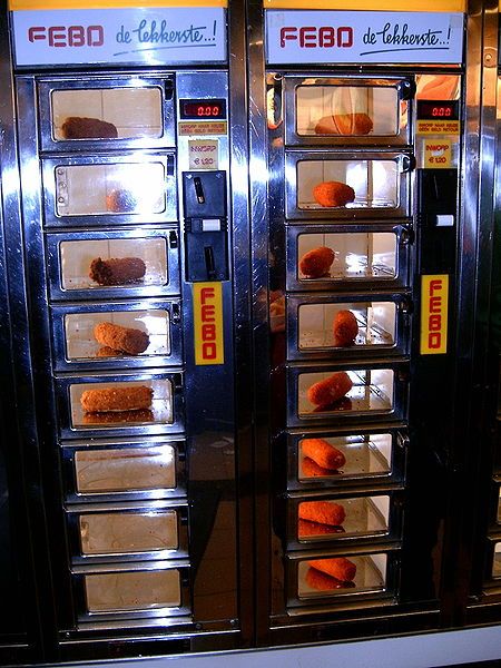빵 사이에 크림을 많이 넣어먹던데, 이 곳은 뚱크로켓빵이 인기입니다 ㅎㅎ. 왼쪽은 자판기에서 사먹는 크로켓 (출처: jumbo.nl, wikipedia)