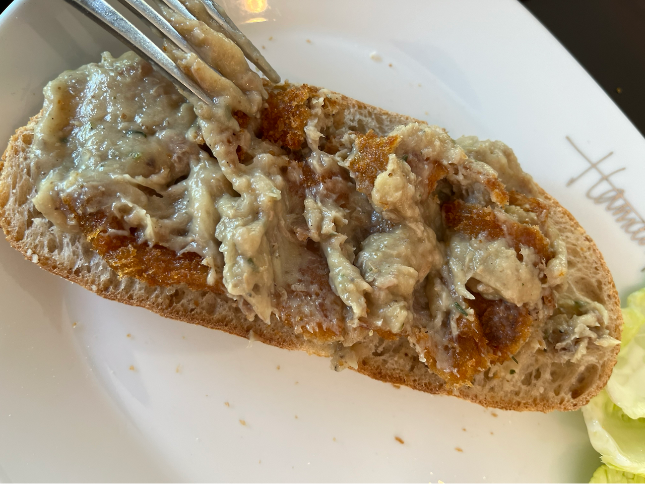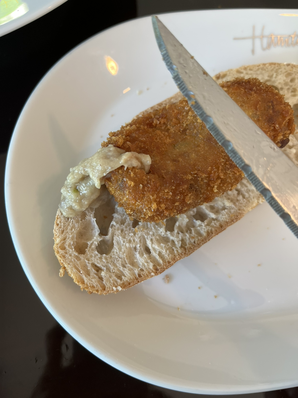 크로켓은 손으로 잡고 한 입씩 먹어도 되지만, 식당에서는 포크와 나이프로 먹어줍니다. 왜냐! 같이 나오는 빵에 떡칠을 해줘야 하거든요.