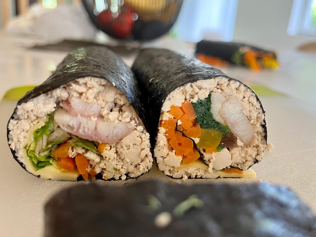 두부김밥도, 훈제 장어김밥도, 그 둘을 합친 퓨전도 다시 해보지는 않겠지만, 재미로 도전도 해보고 새로운 맛도 알아가는 게 즐겁죠…!