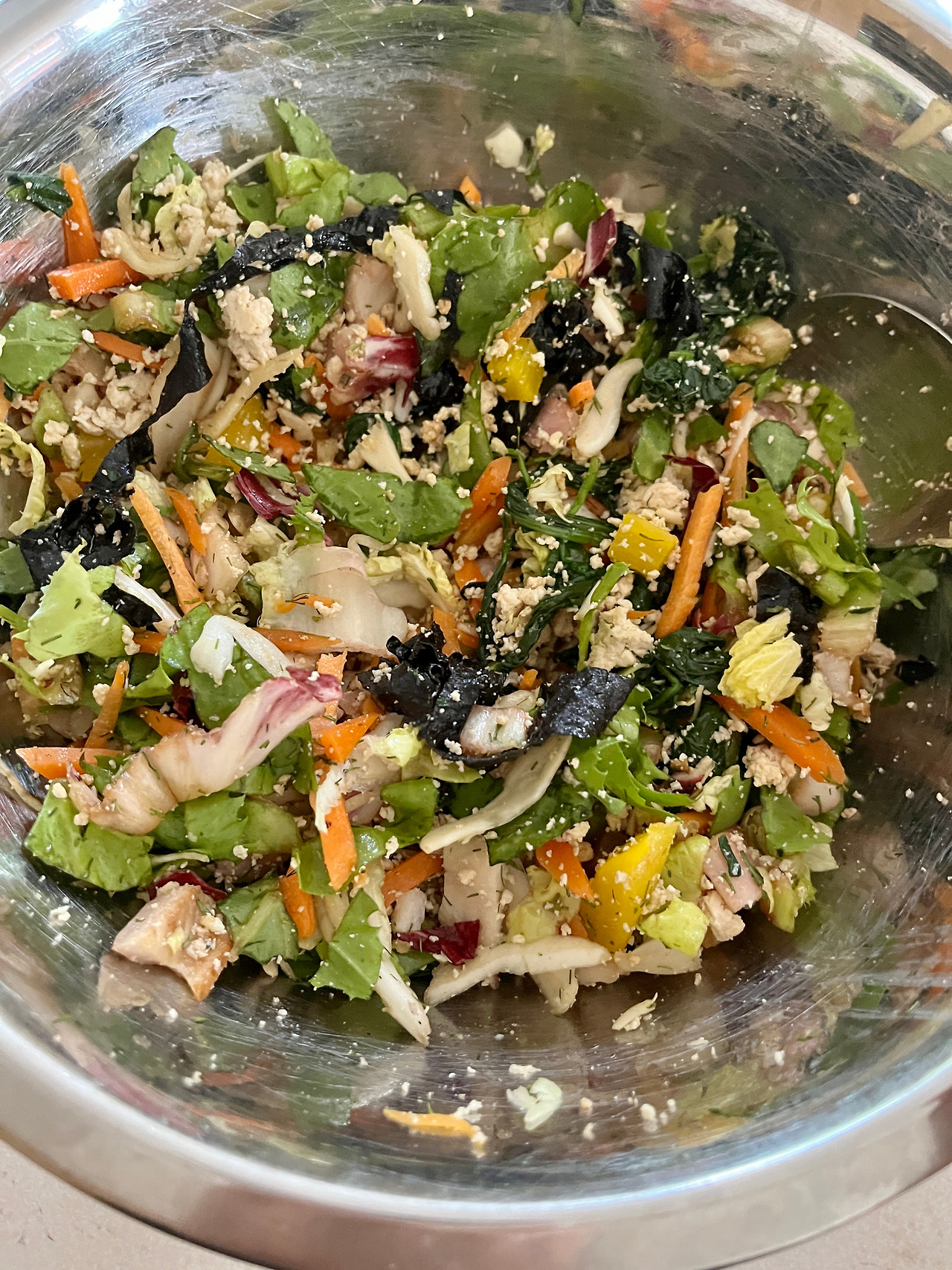 완성된 샐러드. 훈제장어는 이제 보이지 않습니다. ㅋㅋㅋ