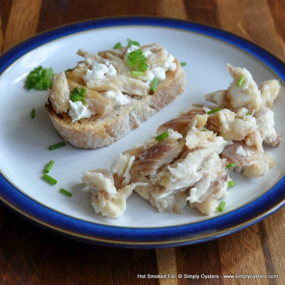 한 조각 맛을 보니, 훈제 장어는 연어 사시미처럼 부드럽고, 기름지고, 고소한 풍미가 가득합니다. 간 같은 아주 깊고 진한 맛을 밸런스 시키기 위해 빵에 올려 먹는다는 게 이해가 가고요. 훈제이지만 훈제 느낌이 아주 조금이라 우아한 맛이라고 느껴졌습니다. 그래서 이 장어의 맛을 가장 잘 느낄 수 있게 해 줄 간단한 조합이 가장 좋겠다 싶기는 했지만 (한국식으로 한 다면 막 지은 밥과 같이 먹는 거죠)...