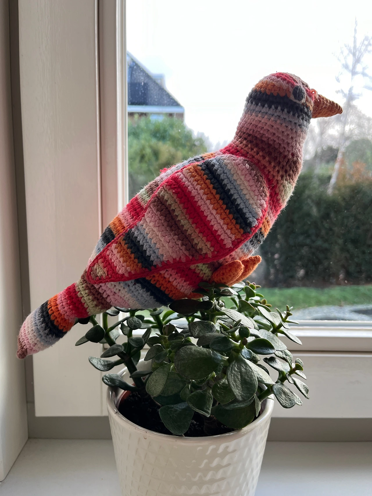 집집마다 창고 세일을 하는 킹스데이 때 눈에 띈 뜨개앵무새 인형을 1유로를 주고 샀었는데요. 어쩐지 색깔이 화려해 아기가 좋아할 것 같았어요. 안에 딸랑이 방울도 있고요. 이제 와 찾아보니 네덜란드의 저명한 디자이너 브랜드네요. 그녀의 이름이 아느 마리 프티트이고요. 득템이었습니다. 하지만 브랜드를 떠나 아기가 백일 전후 지칠 줄 모르고 울 때 이 새를 귀에 대고 딸랑이면 조용해졌었거든요. 수개월이 지난 아직도 새 부리나 날개나 꼬리를 물고 노는 걸 좋아합니다.