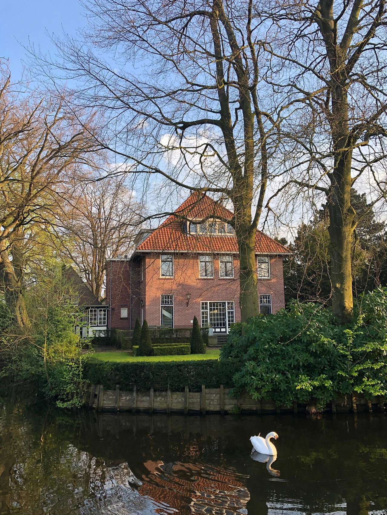 앞에 수로가 많다. 이제는 조경을 위해 물길을 만들기도 한다. 수심도 얕은데 아이들은 보트를 타기도 하고 낚시를 하기도 한다. 그리고 이 물길이 더 낭만적인 이유는 갖가지 새가 유유히 헤엄치는 덕이다. 청둥오리, 거위, 미어쿳, 백조, 황새, 그 외에도 한 두 세 종이 살고 있다. 이 수로에 나름 생태계가 있고 물고기도 있다.