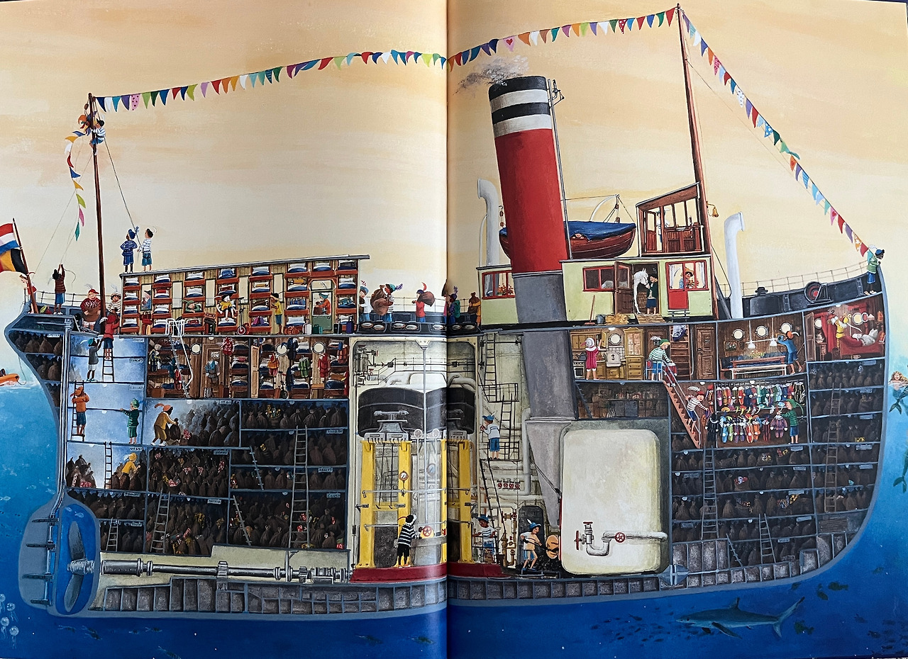 배의 지하는 선물 보자기로 가득 차있다. (큰 배는 네덜란드의 서사에서 빠질 수가