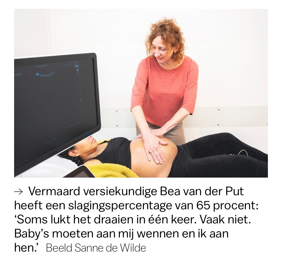 그리고 네덜란드의 맘 커뮤니티 (난 페이스북의 Amsterdam mamas community를 자주 이용한다)를 통해 네덜란드의 숨은 ECV 명인을(?) 찾아보기로 했다. 그렇게 찾은 전문가는 Bea (베아트리체의 짧은 이름, 베아). 신문에도 실리고, 조산원도 ‘암스테르담 지역에서 역아를 잘 돌린다 알려진 인물’이라며 알고 있었다.