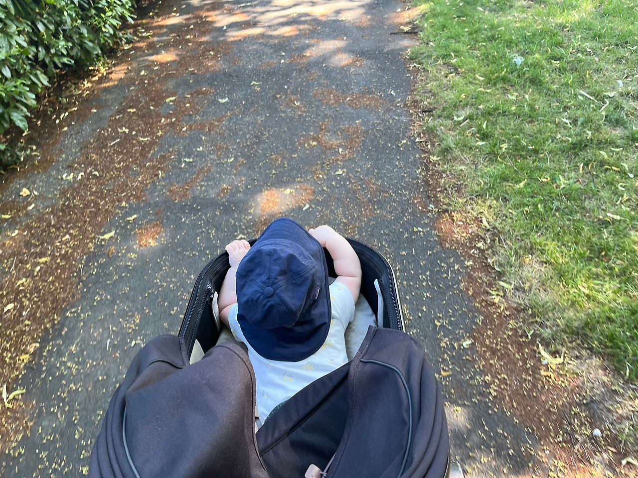 그래서 둘째가 2개월째 때부터 유모차에 유아용 보드를 달아 첫째를 태우고 산책 중이다. 둘째는 누워 자거나 나무를 보다 이제는 종종 같이 산책하는 기분이다. 그래도 둘째가 불편해하면 집으로 돌아가는 게 약속이다. 정원에 바운서나 매트를 사용해 둘째를 내 시야에 두고 첫째가 노는 것도 방법이다.