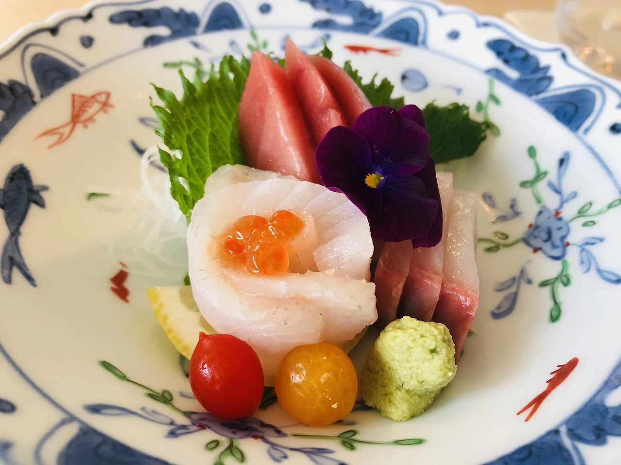 오시마의 사시미 코스와 르포닐에서 산 바게뜨