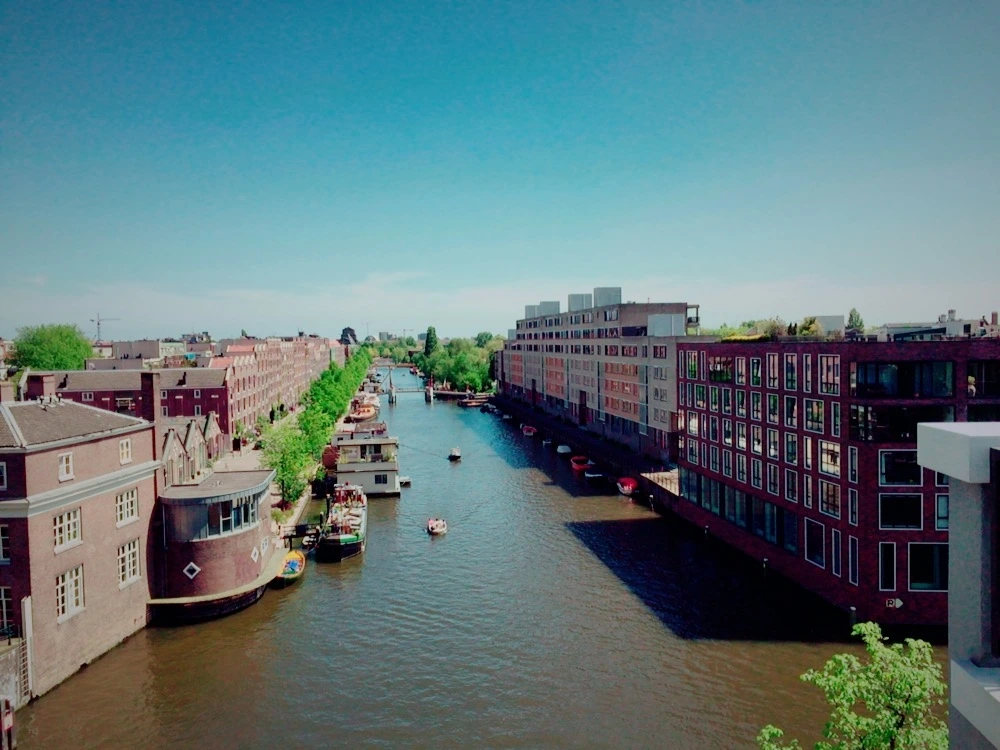 옥상에는 이웃들만 쓸 수 있는 멋진 테라스도 있고, 발코니도 있고, 운하 바로 옆에 있어서 경치도 좋았지. 유럽의 유서 깊음과 한국 아파트의 장점이 잘 합쳐져 만족스러운 곳이었어. 엉트레포트 도크 (Entrepot dok)라는 곳 주변인데, 관광지랑 가까운 듯 멀지만, 역사가 깊은 동네야. 네덜란드 VOC 선박들을 만들 던 동네였거든. 정말 맛있는 레스토랑, 카페도 많아. 지금이라도 가서 살 수 있을 것 같은 동네야.