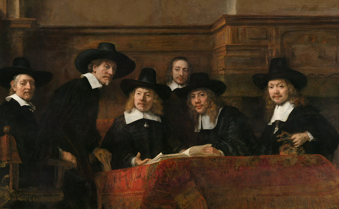 1) 검소함을 중시한 신교/칼뱅주의의 영향: 옷은 가장 좋은 섬유로 만들어지고 귀하고 값비싼 레이스를 달지만, 검은색으로 다른 유럽지역에서 보이던 바로크식 화려함을 가렸다~ (Rembrandt, capitalism and great art: the Dutch golden age comes to Sydney (theconversation.com, Dutch Golden Age painting - Wikipedia)