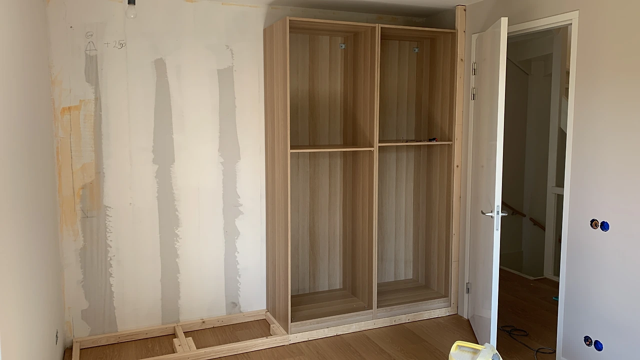 - 붙박이 옷장: 맞춤으로 제작해 원래 벽에 있는 것처럼 만듭니다. 저희는 맞춤 업체를 못 찾아서, IKEA PAX DIY 하고 있습니다. ㅠㅠ