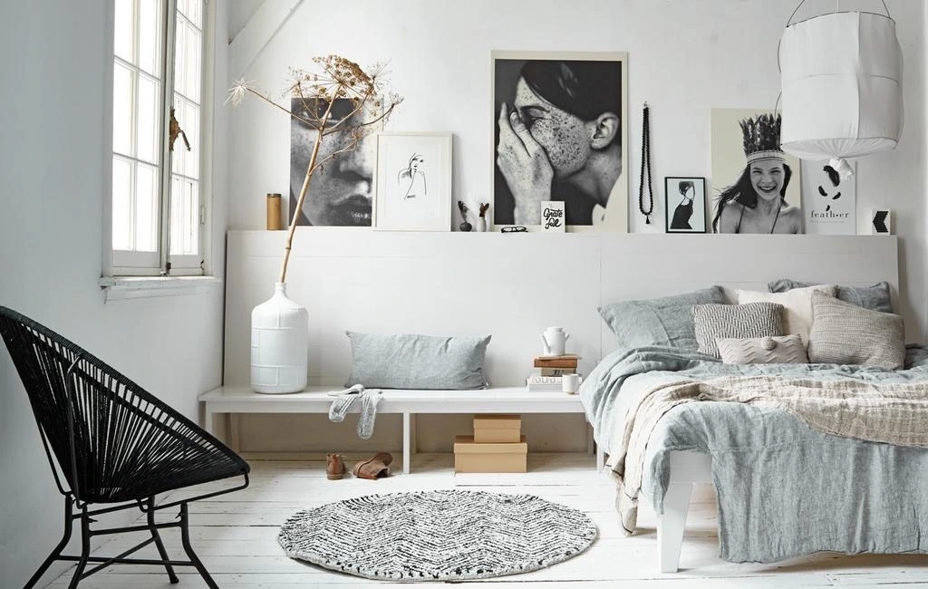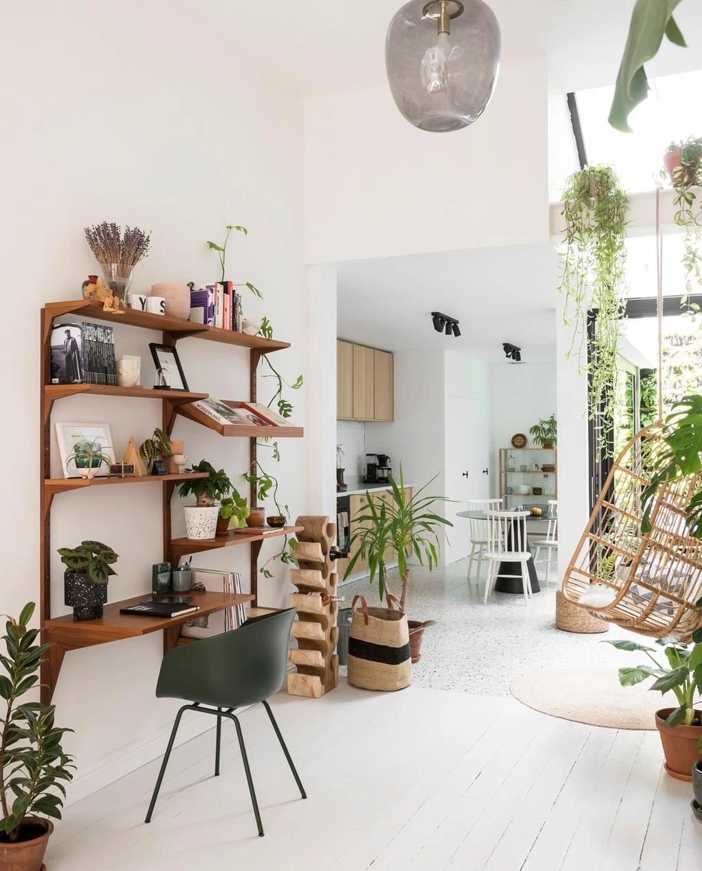 그리고 전반적으로 맥시멀리즘에 가까워 덴마크나 일본 인테리어의 고요함과 차분함이 덜 합니다. 예를 들어 초록색 톤으로 거실 벽을 칠하고, 식물을 많이 두고, 액자를 많이 씁니다.