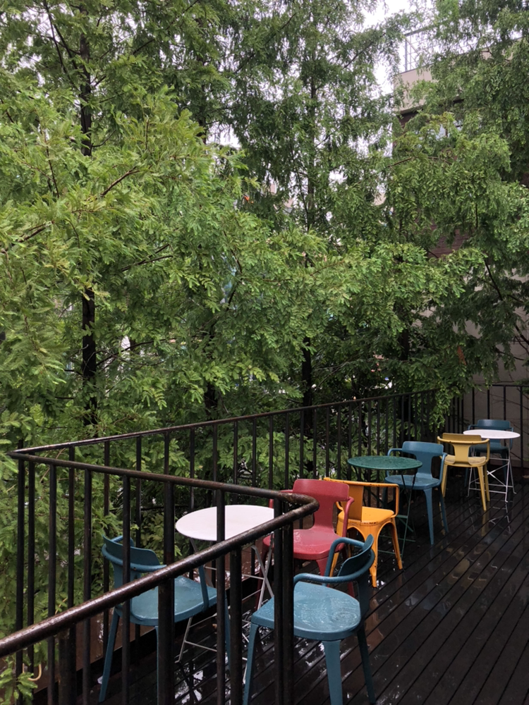 건물 3층 높이에 있는 통창에서 가로수길을 바라보고 있으면 가로수들이 내 눈보다 조금 밑에 있는 풍경이 인상적이다.