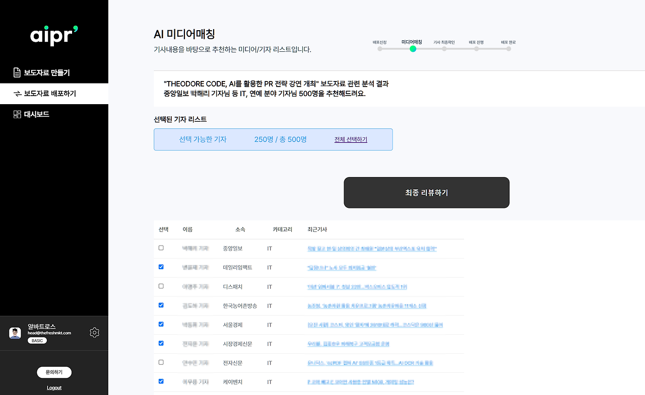 발송된 보도자료는 곧, 언제든지 언론과 미디어에 노출되어도 괜찮다는 의미를 내포합니다. 그만큼이나 신경써서 준비해야만 합니다. 든든한 콘텐츠를 준비한 다음, 어떤 언론기자님에게 전달해야할지를 살펴야합니다. 보도자료를 받게되는 언론사는 어디로 설정해야할지, 기자님의 출입처와 관심사는 무엇일지, 이같은 고민을 함께 짚고 넘어가야만 하는 작업이 요구됩니다. 2주 이내에 작성된 기자님의 기사를 살펴보는 것이 필요하지만 아쉽게도 GPT는 기본적으로 2021년까지의 데이터를 제공하고 있습니다. 결국 일일이 네이버/다음/구글에 검색되는 언론지를 찾아야하는 수고로움이 동반되기 마련이지만, 이 또한 이제는 AI기반의 크롤링을 통하여 업무 부담감이 줄어드는 경험을 가질 수 있습니다.