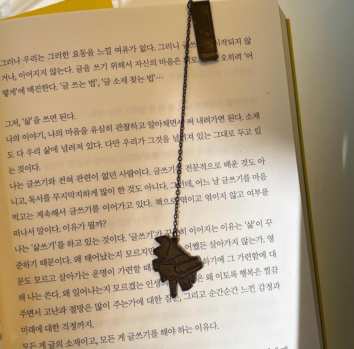 그분이 건넨 내게 선물은 피아노 모양의 책갈피였다. 하지만 코팅된 종이나 자석 같은 것으로 만들어진 흔한 디자인이 아닌 빈티지 골동품 샵에서 발견할 법한 디자인이었는데 기다란 줄에 그랜드 피아노가 매달려 있었다. 그분에게는 내가 그냥 스쳐 지나가는 사람일 뿐인데도 사소하게 오고 갔던 대화를 기억하며 선물을 골랐다고 생각하니 얼굴 못지않은 그의 아리따운 마음씨와 올곧은 인성에 나는 감탄했다. 그리고 그가 준 피아노 책갈피를 무척이나 아꼈었다.
