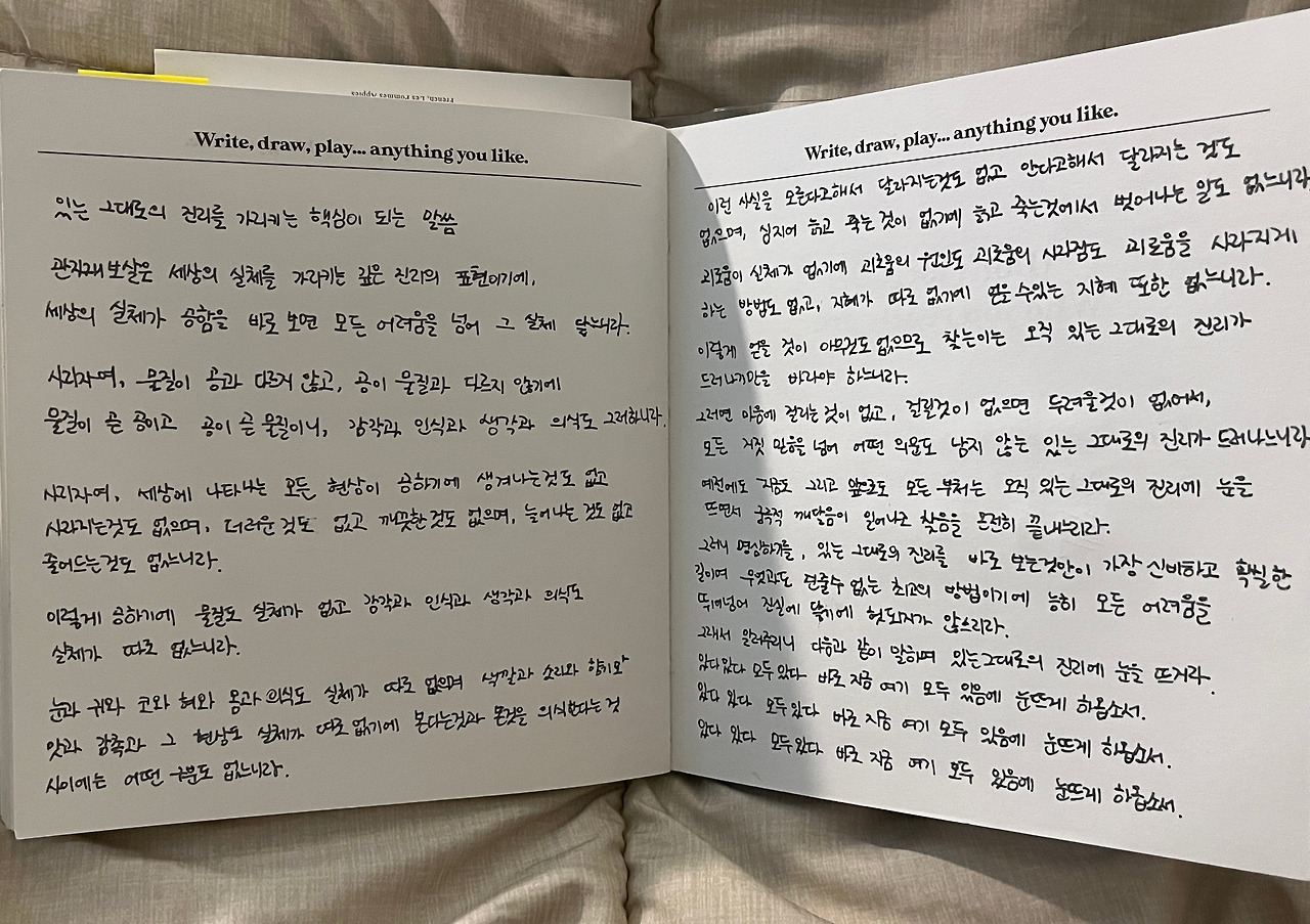 이 마음들과 함께 루이스 헤이의 365일 긍정 확언집을 구매하여 출근 전 아침마다 쓰기 시작했다.