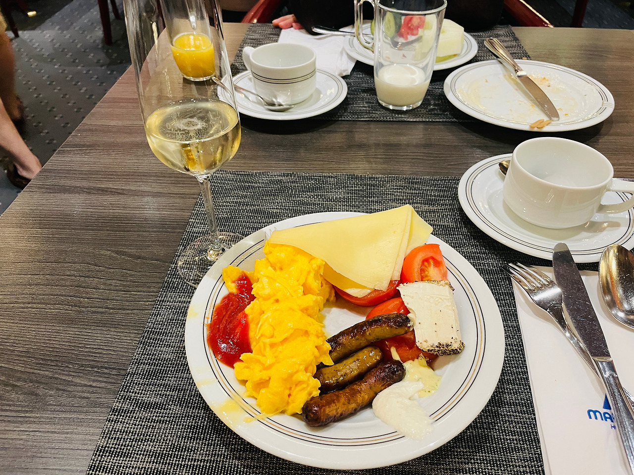 미리 시뮬레이션해 둔 메뉴들로 접시를 채웠다. 접시는 평평한 타입과 오목한 타입이 있었는데, 어제는 잘 모르고 평평한 접시만 사용하는 바람에 이것저것 담기 조심스러웠는데 오늘은 오목한 접시에 안정적으로 충분한 양을 담을 수 있었다. 물론 여러 번 담아 오는 것도 방법이겠지만, 맛있는 건 한 번에 많이 먹어야 더 맛있게 먹을 수 있다. 오늘 아침은 좀 더 특별했다. 어제 눈치 보여 마시지 못한 샴페인을 오늘은 마셨기 때문이다. 특히 오늘 앉은자리는 샴페인이 담겨있는 아이스 버킷 바로 뒤였다. 가까운 위치에 있다 보니 아침을 먹으며 두 잔이나 마셨다. 아침부터 술을 입에 댄건 태어나서 처음이다. 처음 방문한 이곳 독일에서 새로 경험하는 일이 하나 더 늘었다는 사실에 또 신이 났다.