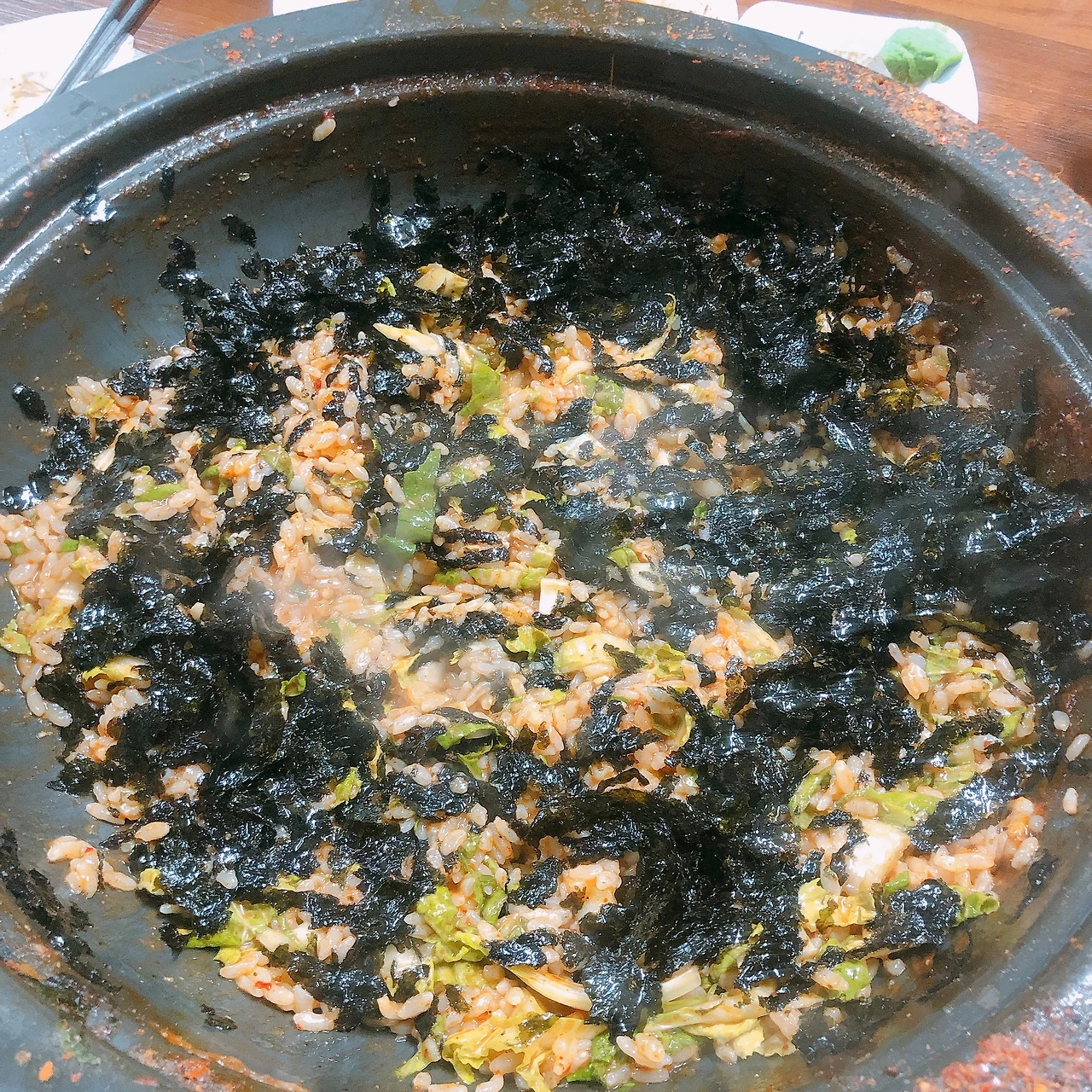 새로 사귄 친구와 따뜻하고 맛있는 감자탕을 먹으며 두런두런 수다를 떨다보면 어느새 밥을 볶아 먹을 시간이다. 물론 양을 넘치게 주는 감자탕 집에서는 소자 사이즈를 시켜도, 감자탕만 먹고 나오기에도 벅차다. 다음에는 꼭 또 다른 글벗 황언니와 함께 셋이가서 꼭 볶음밥도 먹고 와야지. 분명 맛있고 즐거운 시간이 될 것이다.