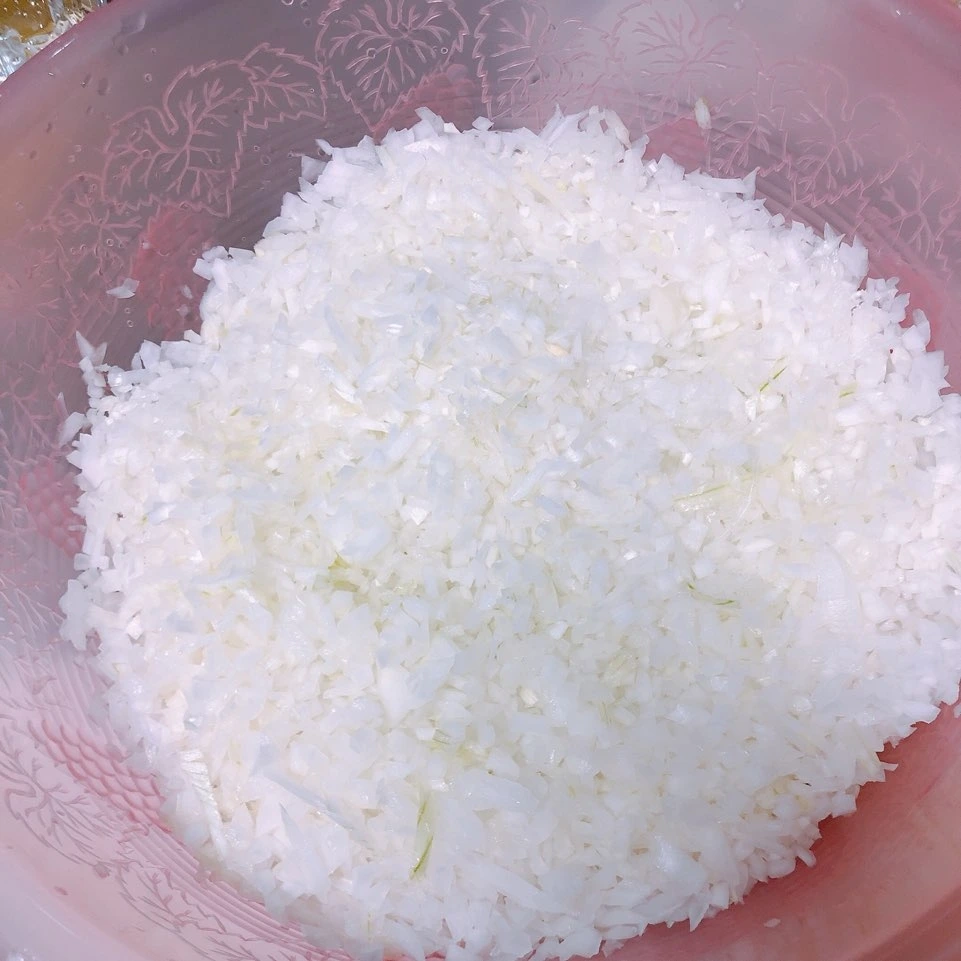 양파와 부추를 씻어 물기를 털고, 부추는 0.5센치의 길이로 쫑쫑 썬다. 양파도 썰린 부추의 크기와 비슷하게 초미니미 사각형 모양으로 썬다. 양파를 썰면서, 스스로 인내심의 깊이를 볼수도 있다. 일단 칼을 잘 갈고, 양파의 매운맛에 눈물 흘리지 않도록 창문을 열거나 초를 켜고 칼질할 것을 추천한다.