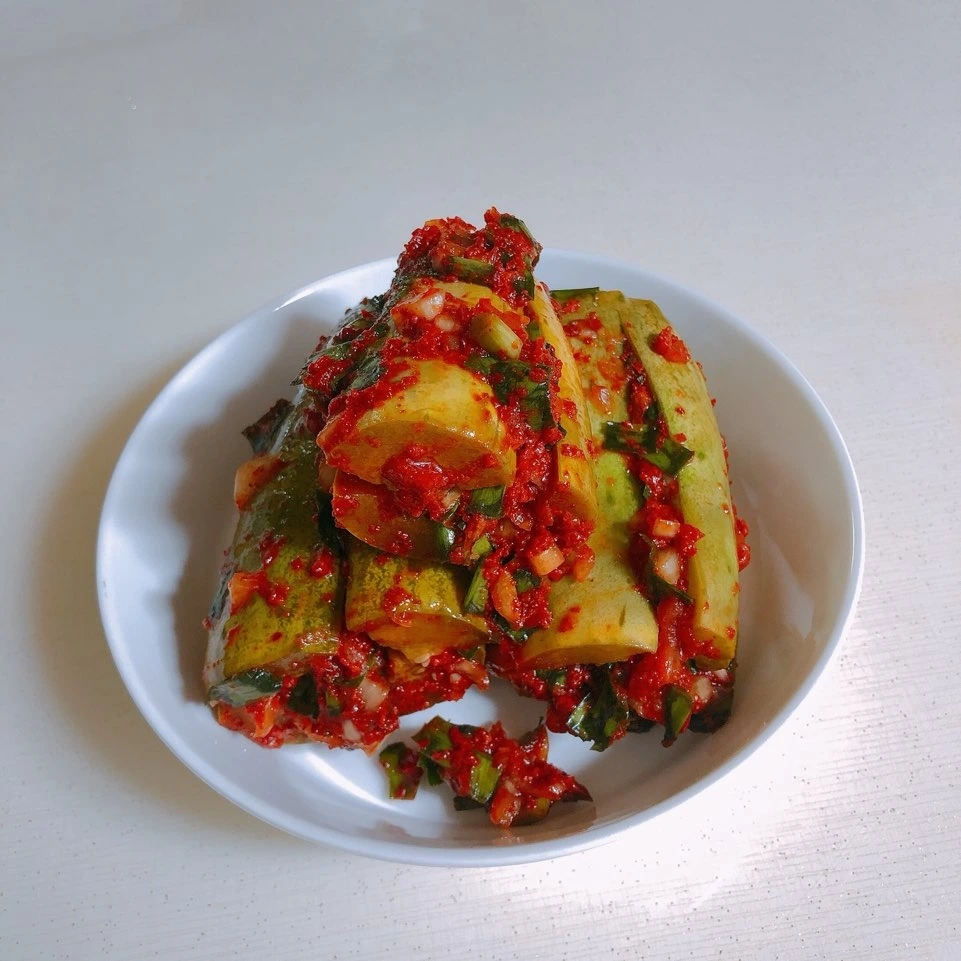 오이 특유의 싱그러운 초록의 향기가 부추와 양파, 고춧가루를 만나 서로 융화되면서 어우러지는 맛은 그 어떤 음식보다도 조화롭고 아름답다.