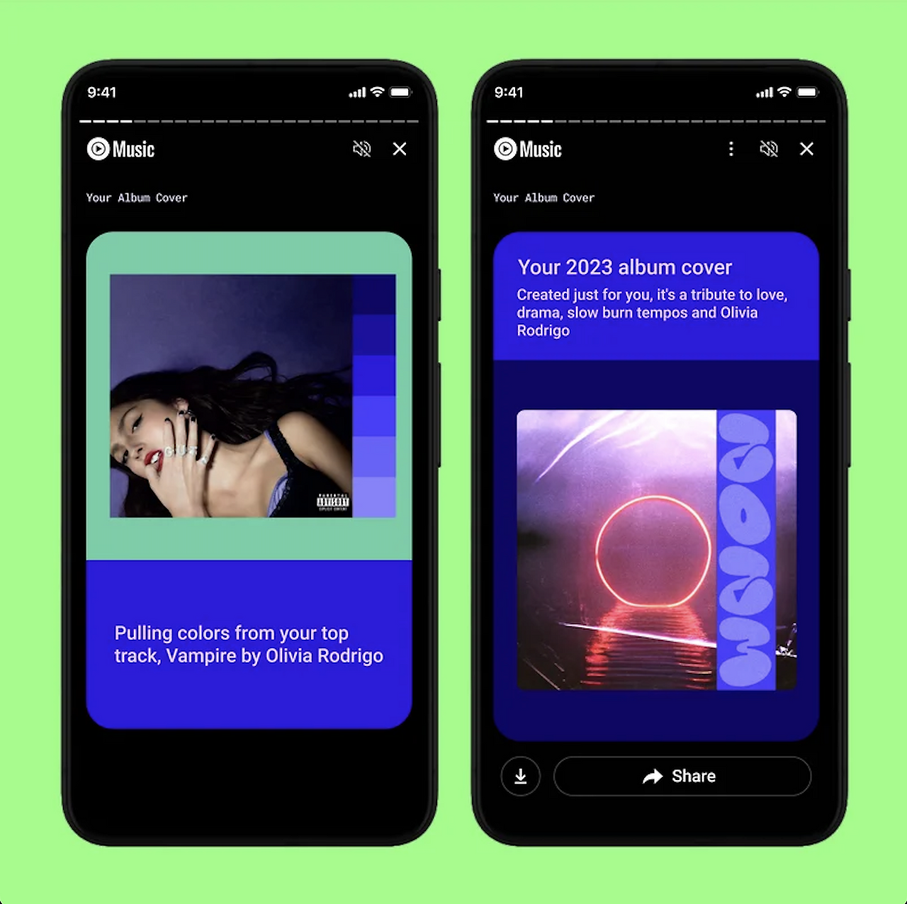 올해는 ‘나의 1년을 앨범 커버로 만든다면 어떨까’라는 콘셉트로 새로운 맞춤 기능을 선보였으며 많이 즐겨 들은 음악과 많이 감상한 음악의 분위기에 맞는 색상과 글꼴, 이미지를 적용해 앨범 아트를 만들어 냈습니다.