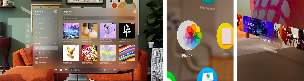Apple Vision Pro은 가장 자연스럽고 직관적인 입력체계인 사용자의 눈, 손, 음성을 통해 제어되는 완전한 3D 사용자 인터페이스를 채택하였습니다.
