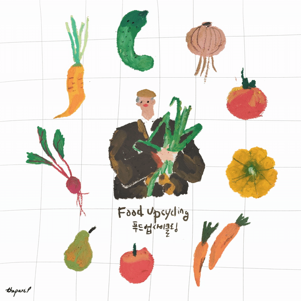 푸드 업사이클링이란 식품의 생산 과정에서 나오는 부산물이나 외관상 상품가치가 떨어진 식품을 창의적인 아이디어를 가미해 새로운 상품으로 만들어내는 활동이에요.
