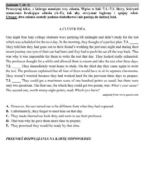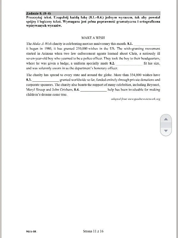 고급형 마투라가 수능영어 듣기보다 난이도가 높은 것은 말할 것도 없다.기본형 마투라의 듣기가 이미 수능 영어 듣기보다 난이도가 높기 때문이다. 여기서 주목할 것은 바로 독해 파트이다. 무시무시하게도 고급형에서는 독해에서도 내가 직접 글로 써 넣어야 하는 문제가 등장한다. 이 시험 유형에서 선택지는 아예 없다. 이런 유형은 우리의 수능에는 없는 내용이다. 즉, 마투라 영어에서는 4지 선다 식의 찍기로 고득점을 받는 것은 꿈도 꾸지 말아야 한다.