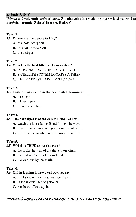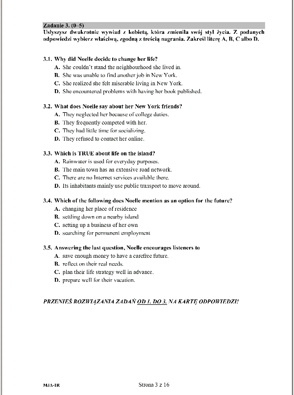 둘째, 선택지에는 영어만 등장한다. 지문이 자국어로 쓰였다는 점은 폴란드 한국 양국의 수능이 같았지만, 일닫 듣기가 시작된 이후에는 영어만 듣고 영어만 읽는 식의 몰입 시험유형이 시작되었다.