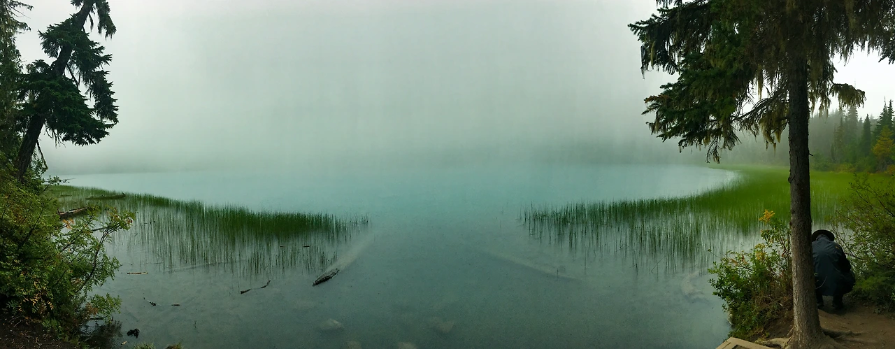 하마터면 호수를 찾아 알래스카까지 갈 뻔했다. 한 시간 반을 그대로 다시 돌아와서 겨우 조프리 호수 진입로에 도착했다. 호수는 산속으로 들어가야지만 볼 수 있다. 조프리 호수는 세 개의 호수로 이루어져 있는데, 다행히 첫 번째 호수는 입구에서 5분 거리였다. 재킷 후드를 덮어쓰고 부슬부슬 떨어지는 빗방울을 맞으며 숲속으로 향했다.