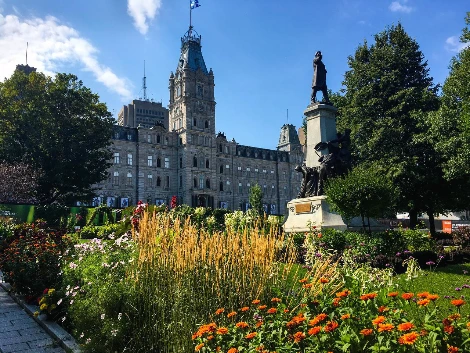 퀘벡 시티 대부분의 볼거리는 성곽 안에 있는데 국회 의사당만은 성곽 바깥에 위치해 있다. 중세 시대 성처럼 웅장한 외관에 끌렸다. 본격적인 투어에 앞서 먼저 퀘벡 도시에 대해 배우고 가면 더 많은 것이 눈에 들어오지 않을까 해서 의사당 안에 발을 딛게 되었다. 마침 무료 투어를 시작하는 시간이었다.