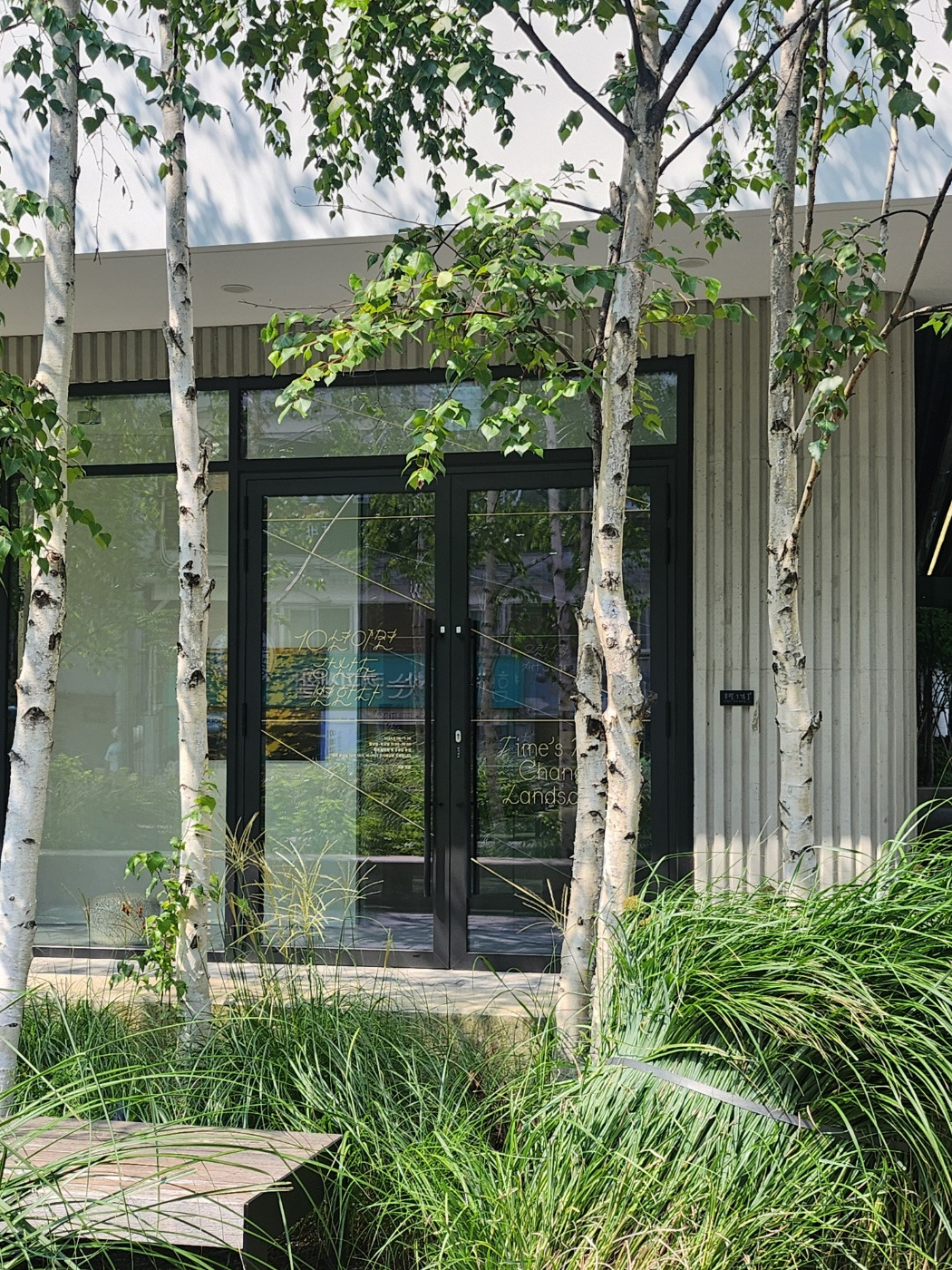 자작나무의 흰 기둥과 녹음이 선명하게 대비되는 한 여름 날 속 미술관, 우란문화재단